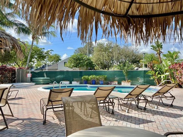 Bright one-bedroom, one-bathroom corner unit in a charming Key West–style community, just half a block from restaurants, shops, and nightlife of Wilton Drive. This ground-floor unit features a beautifully updated kitchen with granite countertops, white cabinetry, dishwasher and a stunning bathroom with floor-to-ceiling mosaic tile. HVAC 2018, in-unit washer/dryer combo and a dedicated parking space located right outside your door. The complex has recently completed brand-new roofs. Other perks include access to extra storage a heated pool, BBQ area, and lushly landscaped grounds perfect for relaxing or entertaining. Pet-friendly under 20lbs, with approval. Move-in-ready just steps from everything Wilton Manors has to offer! Can be purchased with/without tenant in place.
