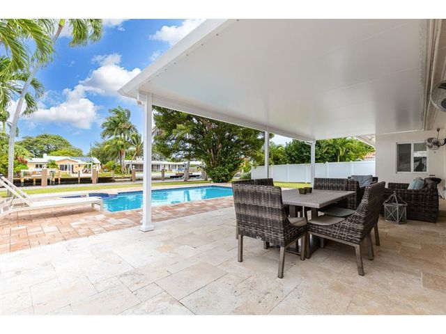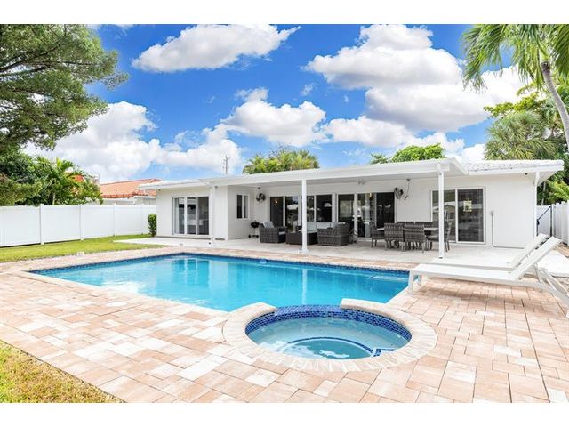 Bring your boat and embrace the ultimate South Florida lifestyle! Experience the best of Fort Lauderdale waterfront living in this beautifully renovated and fully furnished 3-bedroom, 3-bath home. Inside, you’ll find marble floors, a split floor plan, and a gourmet kitchen. Enjoy peace of mind with a newer roof, impact windows, and a brand-new A/C unit. The primary suite features a walk-in cedar closet, offering both charm and functionality. Step outside to 85 feet of water frontage, a private dock with ocean access (one fixed bridge – Sunrise 10’ at high tide), a travertine pool deck, jacuzzi, and spacious covered patio ideal for indoor-outdoor living. Situated on a quiet, dead-end street east of US-1, this turnkey home is truly move-in ready—your waterfront oasis awaits!