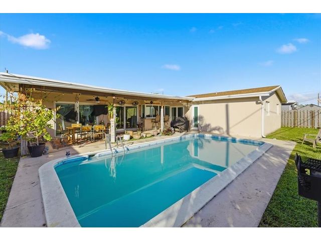 Welcome to this beautifully maintained 4-bedroom, 2-bath home featuring a sparkling pool in a fully fenced in yard in a non HOA community. Step inside to an inviting, open-concept layout highlighted by an updated kitchen with modern cabinetry, stainless-steel appliances, and beautiful countertops. Bathrooms are tastefully updated. Impact windows, 2019 roof and 2022 A/C.