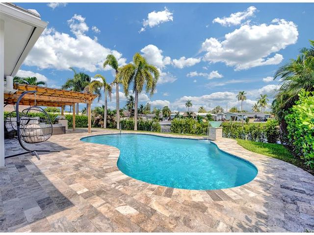 Exceptional 2020-built 3/2.5 pool home with 70ft of waterfront access for boating and beach enthusiasts. The foyer offers mesmerizing views of the water and pool. Enjoy spacious tray ceilings with elegant recessed lighting. The modern kitchen boasts custom cabinetry, high-end appliances, a 36' Kitchenaid gas range and hood, 2 dishwashers, and a vast island with ample storage. Discover dual owner's suites with upgraded en-suite baths. Luxury abounds with high-end finishes and fixtures, including remote-controlled blinds. Step onto the travertine pool deck or the 20ft dock with expansion potential. This home features a new roof, A/C, tankless water heater, PVC plumbing, pool pumps, near golfing, entertainment, Pompano Pier, beach, dining, and more!