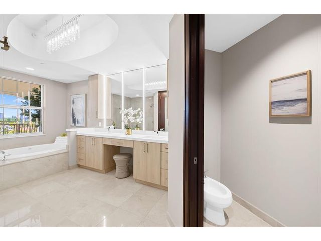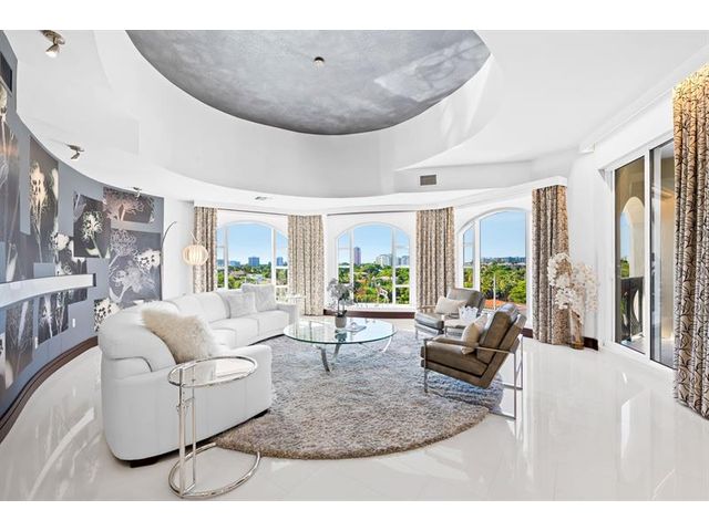 Experience luxury living in this exceptional PENTHOUSE located in one of Boca Raton's prestigious boutique buildings beachside. As the elevator opens into a private foyer, you'll be immediately drawn to the elegant light-infused 42x30 FT grand salon. Boasting over 10 FT ceilings & 4 expansive balconies that add up to nearly 1,000 SF, this extraordinary residence exudes the ambiance of an elevated home. The versatile floor plan includes 3 beds, a media room, a large gourmet kitchen with a gas cooktop, Subzero & Wolff applianc, and a spacious family room. The primary suite offers a custom-fitted closet, a cozy sitting area, and its own terrace. High-end materials & finishes are present throughout, featuring custom built-ins, lighting, and wine storage. This property is truly one-of-a-kind.