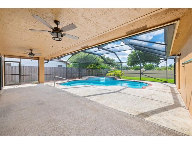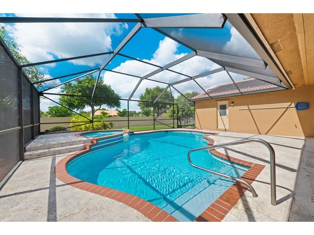Spacious 4BR/3BA pool home in the sought-after Waverly Hundred of West Davie! Triple-split floor plan with large open living and entertaining spaces. Updated kitchen features granite counters and stainless steel appliances. Primary suite offers a spa-like bath with dual sinks, jetted tub, oversized shower with rainfall head, and walk-in closet. Hurricane-impact windows, sliding doors, and garage door. Newer systems include AC (2021) and water heater (2016) for peace of mind. Enjoy the backyard oasis with a fully screened, solar-heated freeform pool, covered patio, and fenced yard. Circular driveway and 2-car garage provide ample parking. Prime location near shopping, dining, parks, and I-75. “A”-rated schools and low HOA ($413/year)!