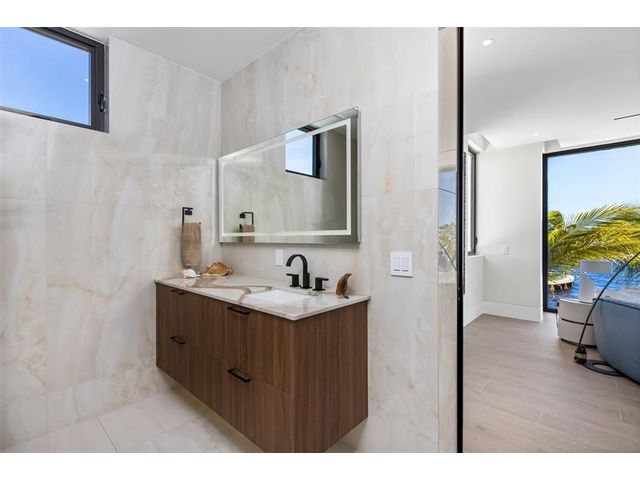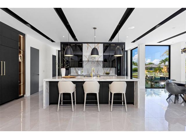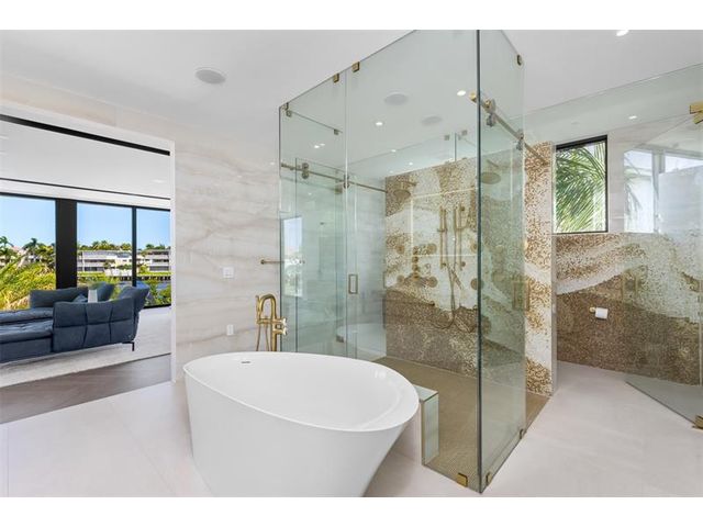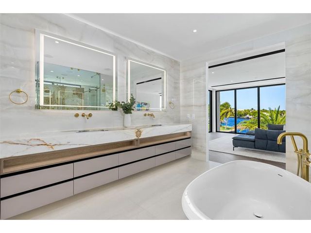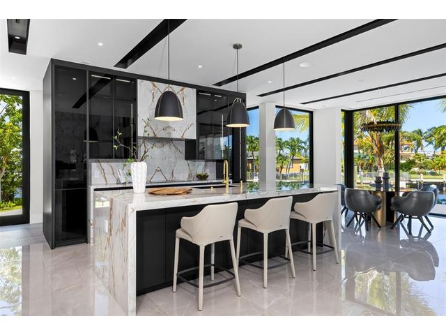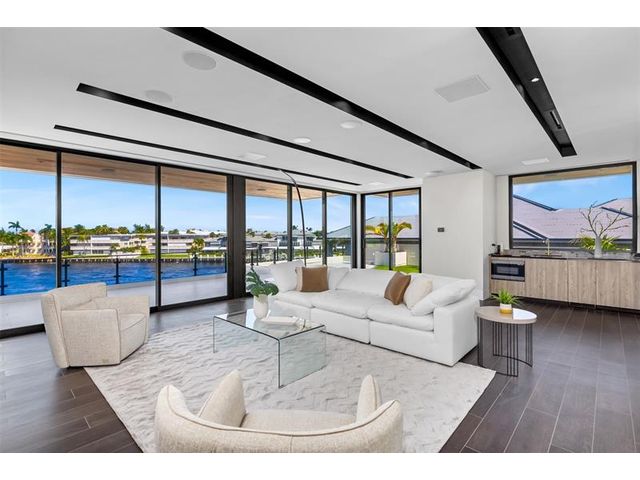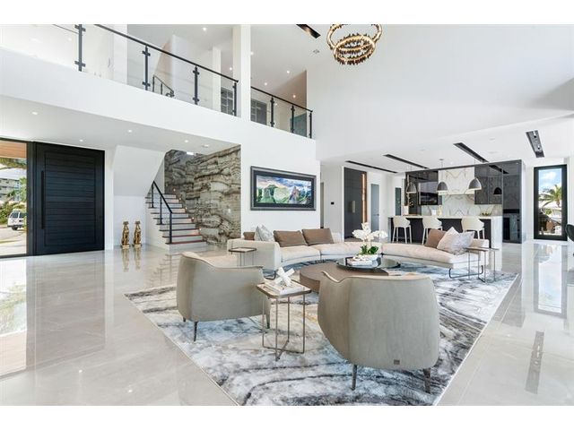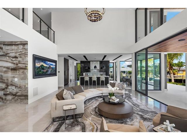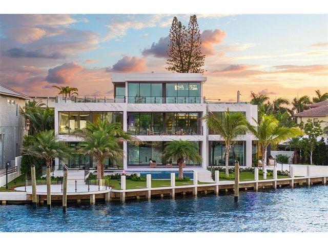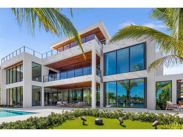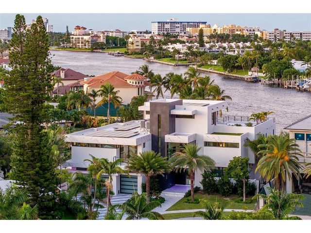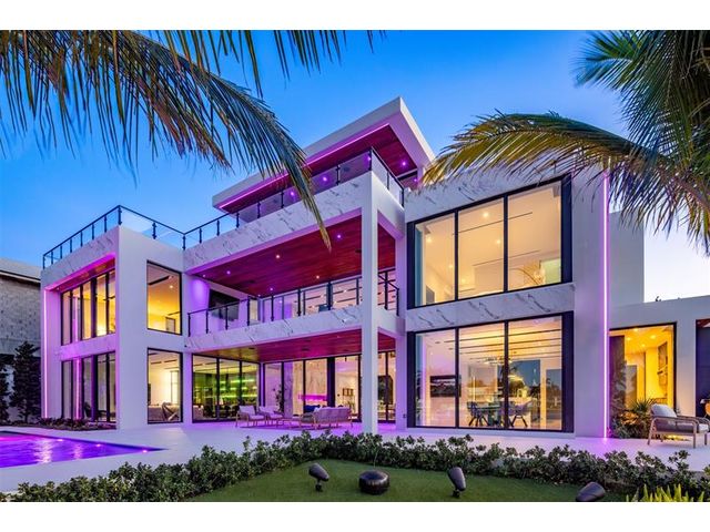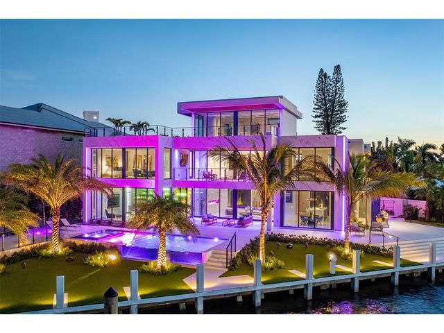 This 3 story custom masterpiece has it all. Passing through the oversized pivot door, you are greeted with double high ceilings & oversized glass sliders offering a picturesque long-water view. The homes design makes the most of the lot, providing breathtaking views from almost every space across all 3 floors. An elevator provides easy access & your garage has ceiling height to allow for a lift (up to 6 cars). A Control 4 system manages your full spectrum Color-Beam lights & concert quality sound. Your concrete dock offers 3 Power Pedestals & 140'+ straight to accommodate your yacht(s). A summer kitchen complete with smoker, ice maker, & fridge right outside your kitchen. A full-home Generac Solar system w/ 3 power banks provides further peace of mind. Home is wired for Lutron Shades.