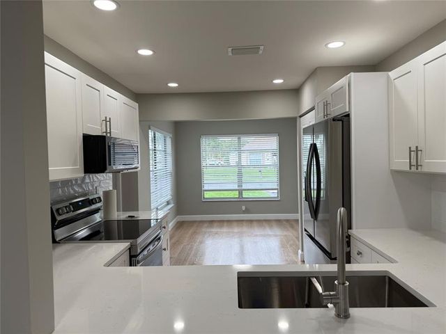 Welcome to your ideal Florida retreat nestled in a quiet Greenacres neighborhood in a 55+ community, this charming 2 bed, 2-bath home offers a perfect blend of comfort, style and convenience. A warm, inviting living space with an open-concept layout that flows effortlessly from the entry through the living and dining areas ideal for everyday living or entertaining. Two bedrooms provide ample comfort and privacy, designed with practical, modern finishes. The kitchen features new stainless-steel appliances, generous cabinet and counter space, and easy access to the main gathering areas. Plenty of natural light creating a bright and airy atmosphere throughout. Outdoor living is a breeze: step into an enclosed patio off the master and living room where you can entertain or simply relax