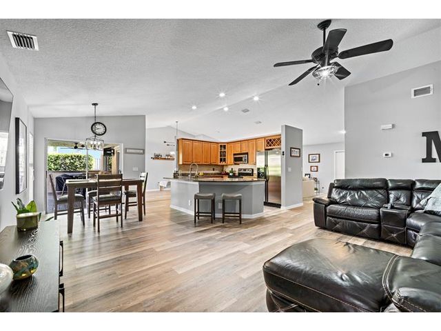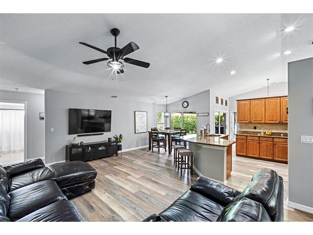 Amazing Opportunity to Purchase One of the Finest Homes available in Winston Park! This 4/2 Split Floorplan with Vaulted Ceilings has been immaculately maintained and highly upgraded with features including: Top of the Line LVP Flooring, Updated Kitchen w/ Wood Cabinets, Granite Countertops & SS Appliances, Built in Wall Unit with Wine Cooler & Beverage Fridge, Bathrooms Renovated, Pavered Patio with Pool & Spa, Fully Fenced Yard, Full Hurricane Protection, Interior Laundry, Multiple Sheds, Attic Has Flooring For Storage & More! This is a MUST SEE property.