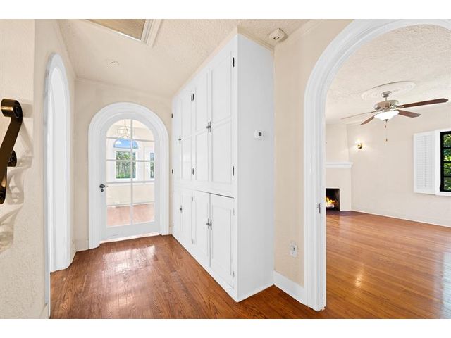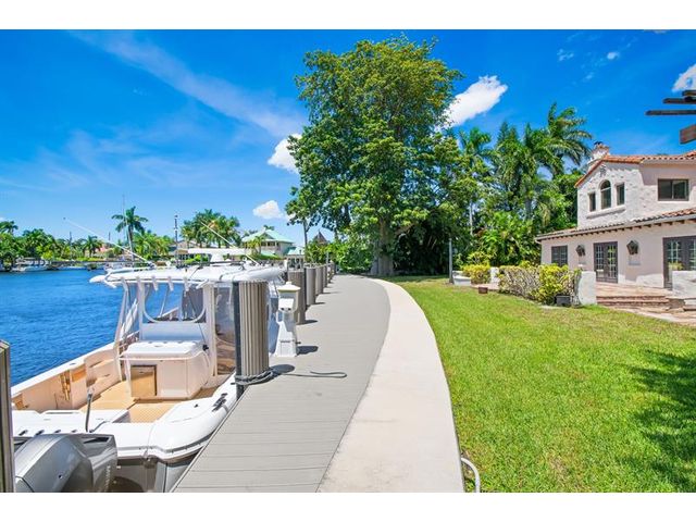 Fort Lauderdale’s most exceptional waterfront estates. Nestled within the gated enclave of Tropical Point, the 3,420 sq. ft. home sits on over half an acre with 118 feet along the South Fork of the New River, balances historic charm with water views of “Little Florida.”. Original details—arched French doors, fireplaces, hardwood floors, and curved entryways—blend seamlessly with modern enhancements including a rebuilt staircase, brand-new tankless W/H, updated roof work, additional A/C, and a new 118-foot seawall & dock. A 3-car garage, one bay fully air-conditioned. The primary suite upstairs enjoys a private balcony with breathtaking views, while the main level offers formal and casual living spaces, dining, kitchen with butler’s pantry, 2 laundry rooms, and an exterior powder bath.
