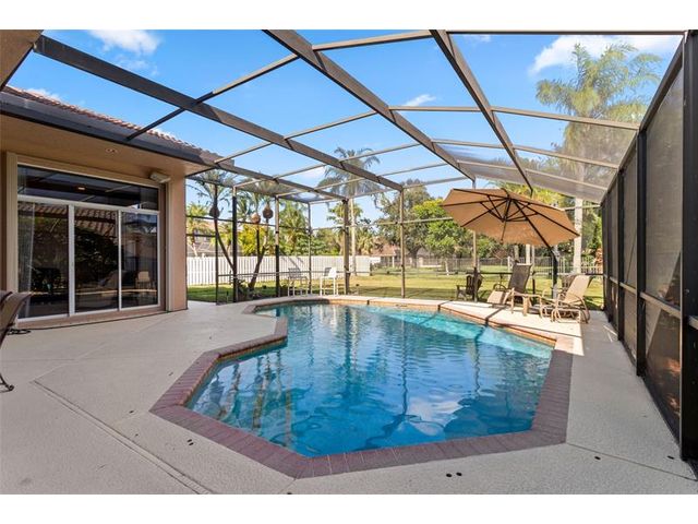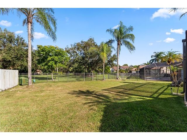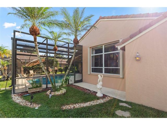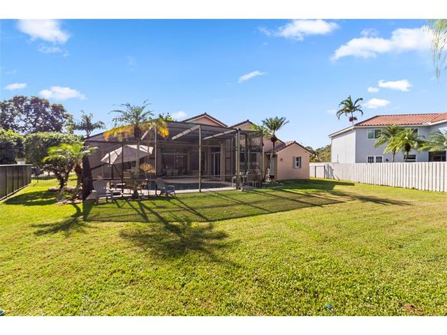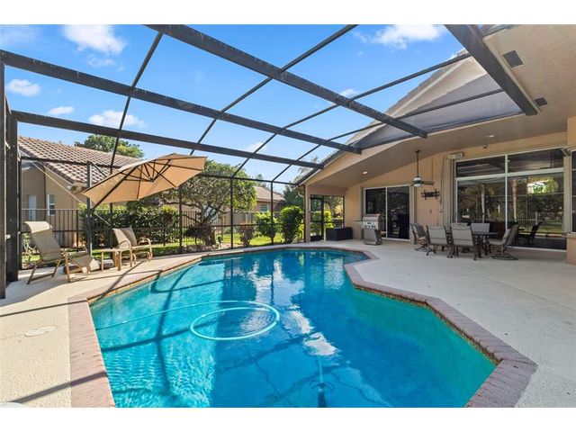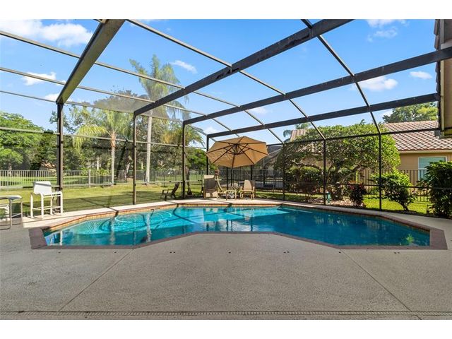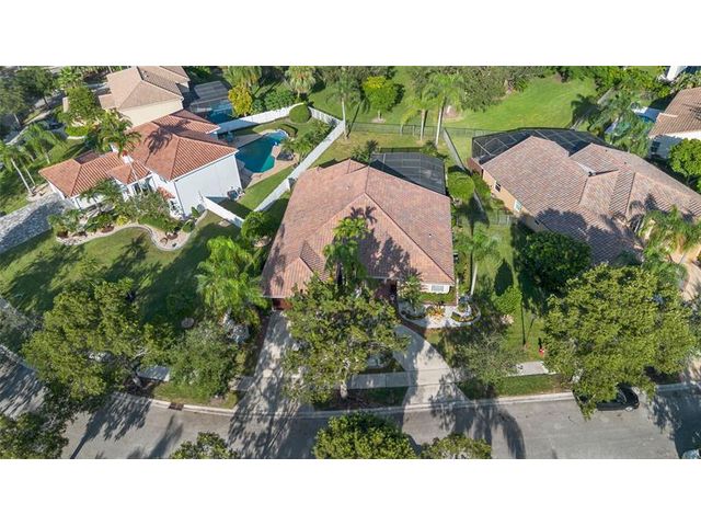 Fabulous pool home in the sought after guarded gated community of The Lakes in Weston. This gem sits on an oversized lot with a circular driveway. Freshly painted inside and outside. Large open floor plan. Electric blinds with remote controls in the living and family rooms. Master suite has a relaxation area with a great view of the salt water pool and fenced yard. Beyond the fence is a green area for your enjoyment that is maintained by the community. The second and third bedrooms are large and share a full double sink bathroom. Kitchen boasts 42" cabinets and granite countertops with a high bar sitting area. Community clubhouse, pool, and soccer field. Close to shopping, dining, and expressways. Well known for A+ rated schools. Come make this treasure your new home!