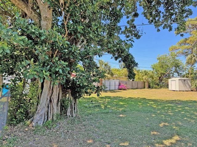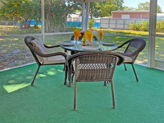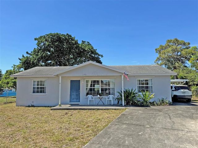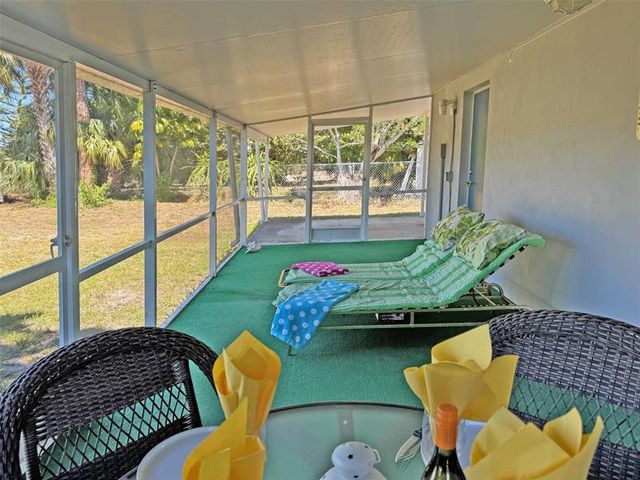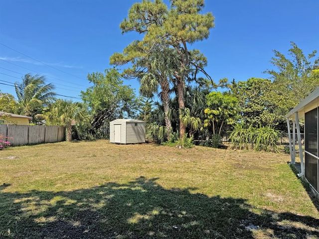 Welcome to your affordable Florida Living with sandy beaches just a few miles away. Enjoy Florida’s blue Skies and Sunshine in your own house with a beautiful tropical garden. Light and bright well maintained and partially furnished home, 3 bedroom / 2 bath. A/C 2018. Concrete seating area in front of the house under roof. Large Corner Lot with room for a pool. Screened in patio with a large seating area for both dining table and sunlounges. Free-standing Large shed with extra storage in the garden. 1 car parking Carport + driveway. Welcome!
