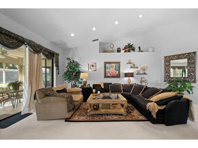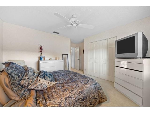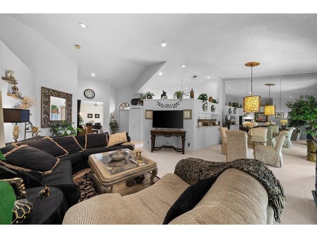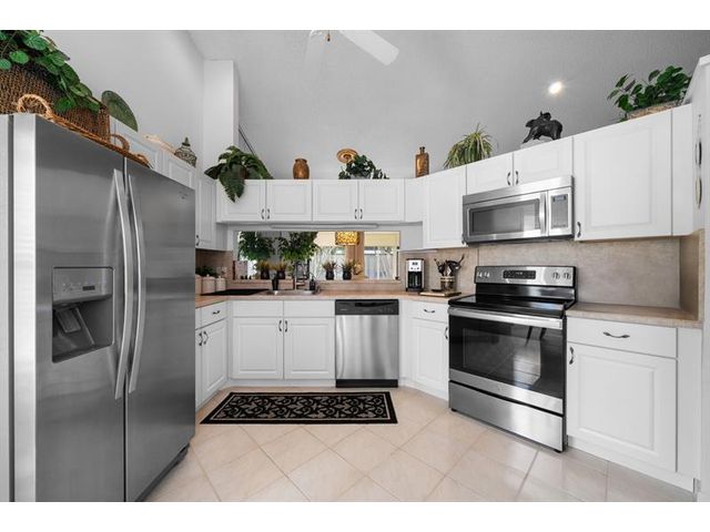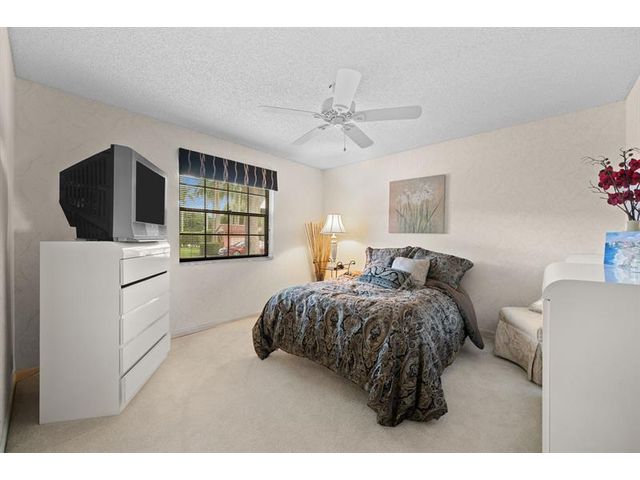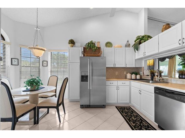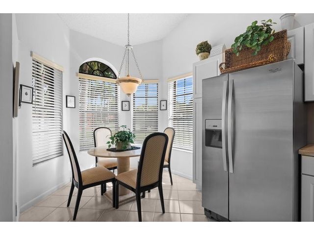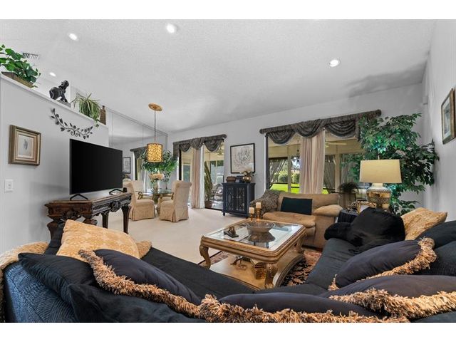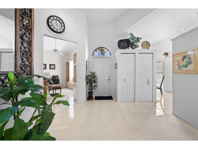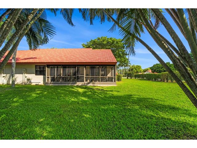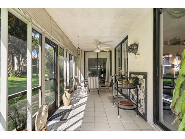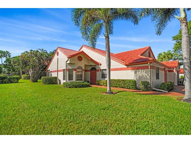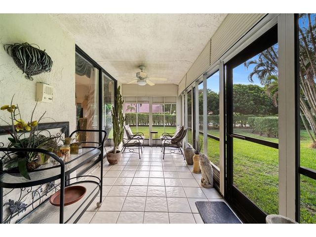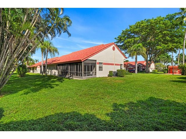 This beautifully maintained furnished end unit offers 3 bedrooms, 2 baths, and a versatile flex room currently used as a den—easily convertible into a third bedroom if desired. Enjoy a lush tropical garden view, ceramic tile flooring, and soft carpeting throughout. The spacious primary suite features a Roman tub, separate shower, dual sinks, and both a walk-in and an additional large closet. This residence is furnished and turnkey ready for the next homeowner to move right in. The HOA covers building insurance, cable, roof maintenance and repair, water, landscaping, pest control, and an on-site manager. The vibrant 55+ community offers an active lifestyle with a wide range of clubs, social gatherings, and activities—truly a wonderful place to call home.