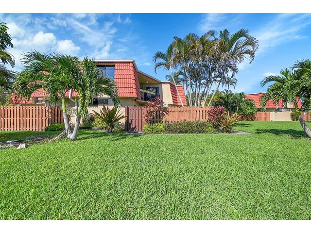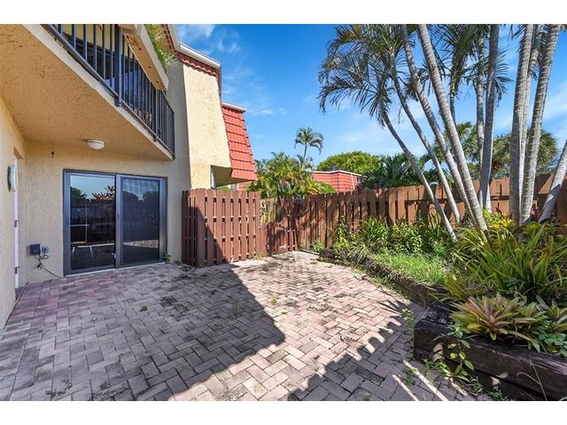 Move-in ready Boca beauty with lake views! Beautifully maintained 2BR/2.5BA two-story townhouse in a prime central Boca Raton location. Enjoy a spacious private courtyard, perfect for relaxing or entertaining. The updated, open kitchen features granite countertops, tile backsplash, and abundant cabinets and counter space. Wood laminate floors throughout. Convenient half bath and full-size washer/dryer downstairs, plus extra storage. Upstairs, both bedrooms offer private baths and sliders to a shared balcony with serene lake views. Sold furnished. Community amenities include clubhouse, pool, and tennis courts. Pet-friendly (2 dogs allowed). Rentals permitted after 2 years.