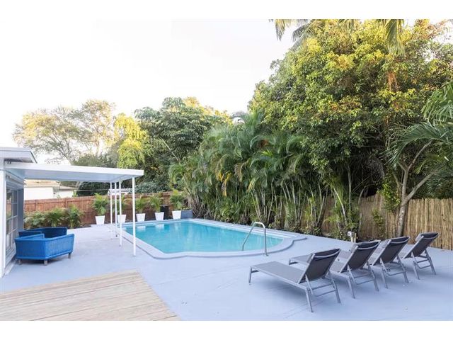 This beautifully updated 4-bedroom, 3-bath home offers spacious living with plenty of natural light. Step through the white picketed entryway into the open layout, featuring exposed wood beams at the entrance, a bright living space with large windows, and a kitchen with modern appliances. The patio boasts a wooden deck and covered area, perfect for outdoor entertaining. The 4th bedroom is a garage conversion, with an additional storage room attached to the house. Enjoy a private pool and a backyard full of greenery. Located in an unincorporated area, this property offers added flexibility — making it an excellent opportunity for Airbnb hosting or as a long-term investment property.