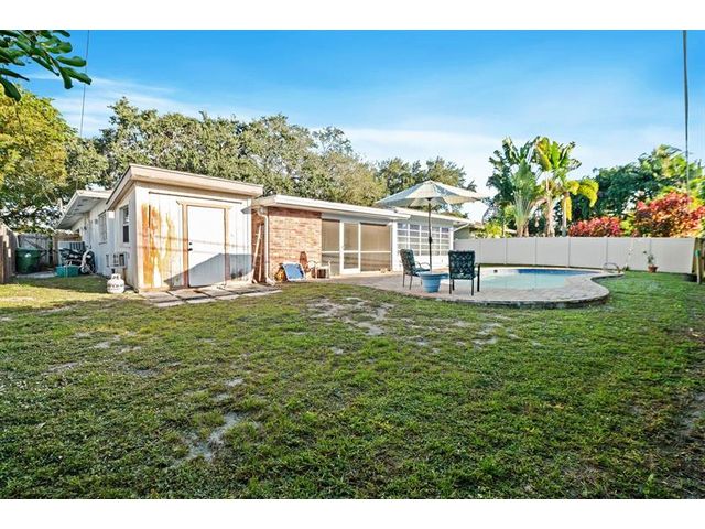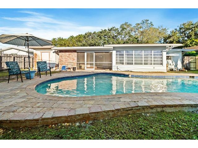 This spacious 3-bedroom, 2.5-bath home has great potential for comfortable everyday living and easy entertaining. The split floor plan offers plenty of privacy, with a primary suite on one side and guest bedrooms on the other. You’ll love spending time in the open living spaces, perfect for relaxing with family or hosting friends. Enjoy your own backyard retreat, complete with a pool, screened patio area and fully fenced yard—great for kids, pets, and weekend BBQs! The circular driveway and covered carport make parking simple and convenient, with plenty of space for guests. This home can have it all—space, comfort, and a great setup for both quiet nights in and fun gatherings outdoors. (Roof was replaced in 2018.)
