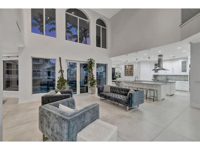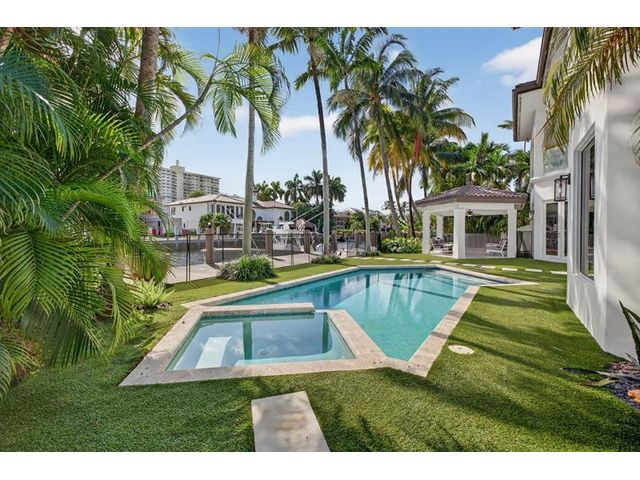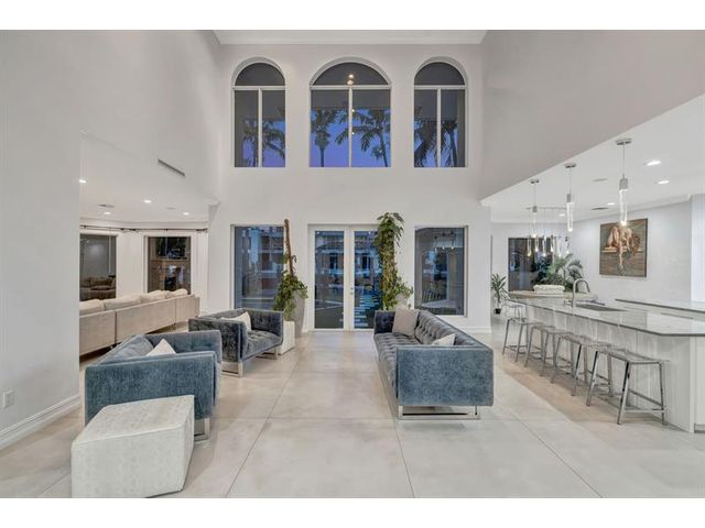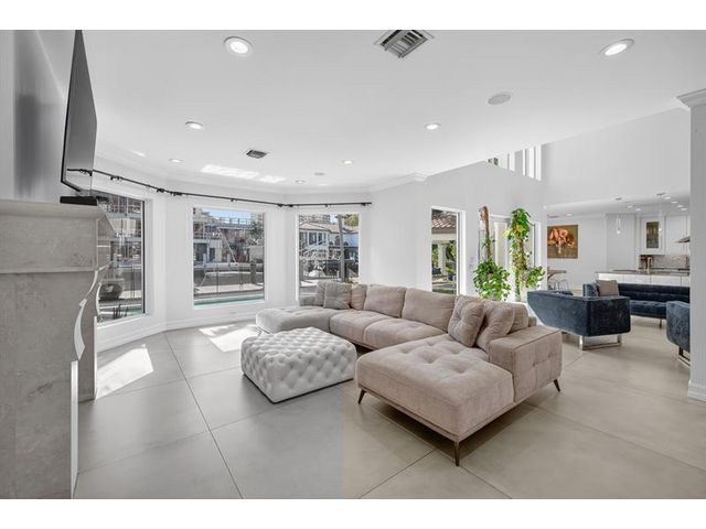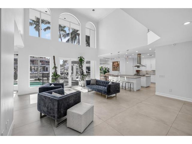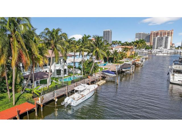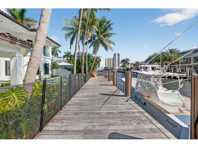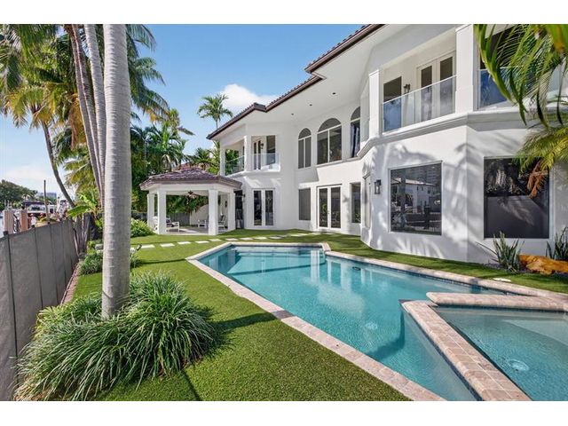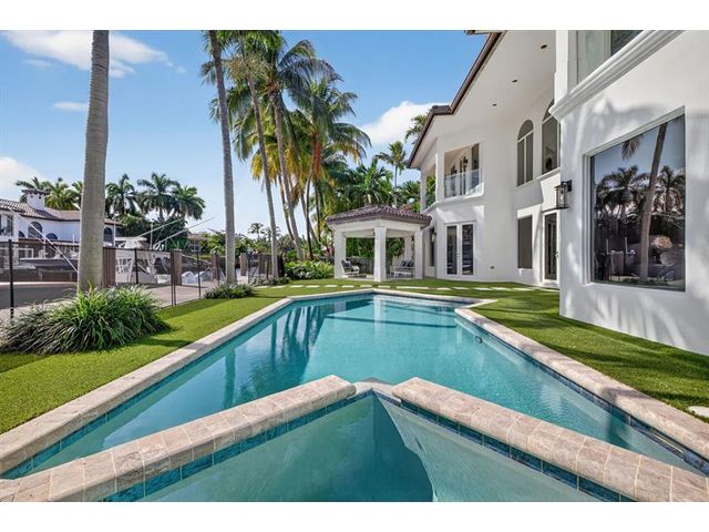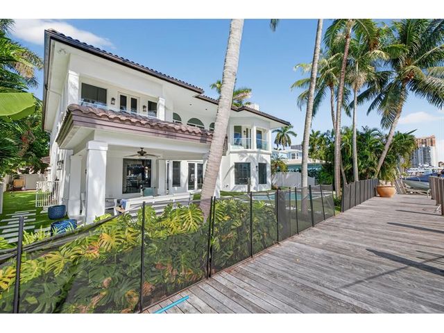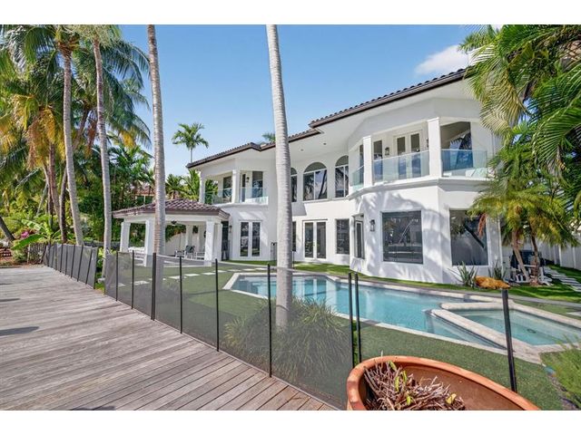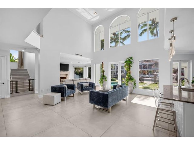 Experience premier waterfront living in Seven Isles! Just 3 lots from the Intracoastal, this meticulously maintained estate features 6 beds/ 7 baths, soaring floor-to-ceiling windows, large porcelain tile floors & a private elevator. The elegant living area includes a fireplace & a newly remodeled gourmet kitchen with double islands, quartzite countertops, SS appliances & a gas cooktop. Perfect for indoor-outdoor living the backyard offers turf, a sparkling pool, outdoor bathroom, sauna, & a private deeded dock. Upstairs, rich wood flooring leads to the primary suite, private balcony, spa-style bath & a second oversized ensuite bedroom. With lush landscaping, a laundry room & numerous upgrades, this home offers resort-style living in one of Ft. Lauderdale's most desirable WF communities!