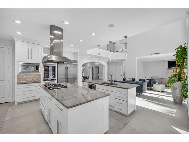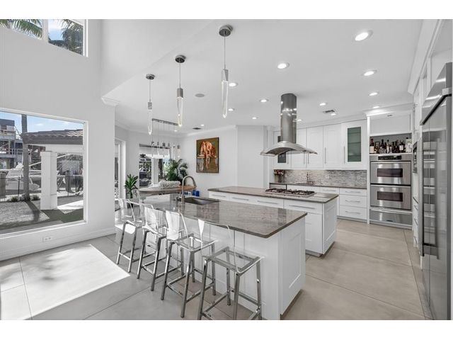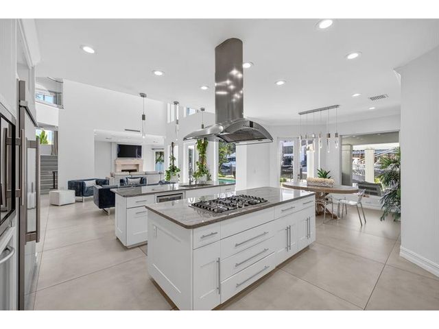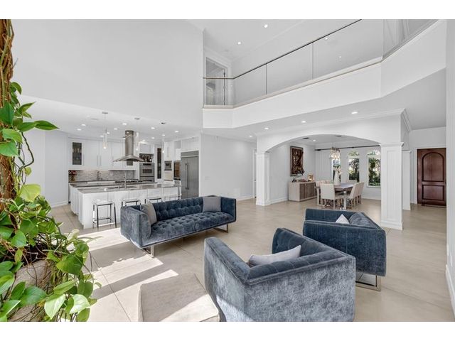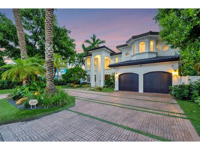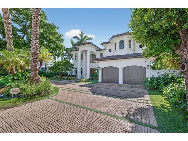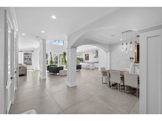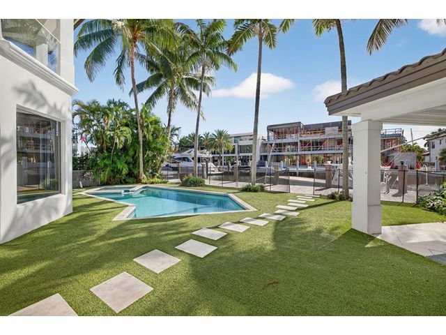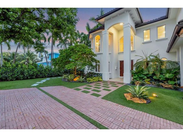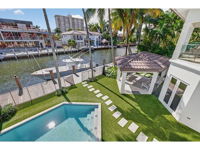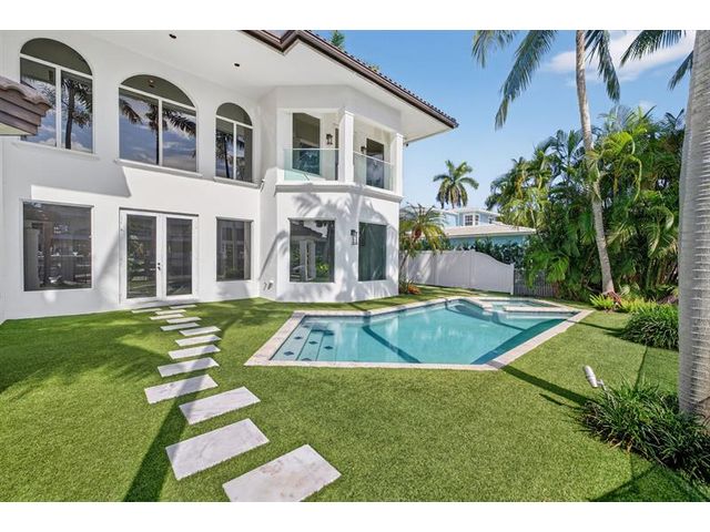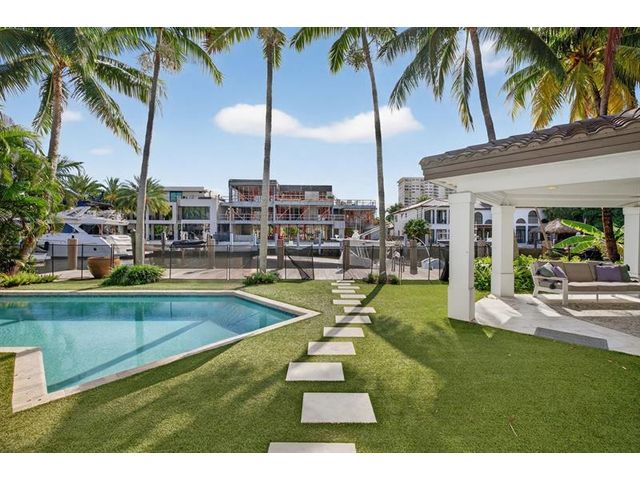 Experience premier waterfront living in Seven Isles! Just 3 lots from the Intracoastal, this meticulously maintained estate features 6 beds/ 7 baths, soaring floor-to-ceiling windows, large porcelain tile floors & a private elevator. The elegant living area includes a fireplace & a newly remodeled gourmet kitchen with double islands, quartzite countertops, SS appliances & a gas cooktop. Perfect for indoor-outdoor living the backyard offers turf, a sparkling pool, outdoor bathroom, sauna, & a private deeded dock. Upstairs, rich wood flooring leads to the primary suite, private balcony, spa-style bath & a second oversized ensuite bedroom. With lush landscaping, a laundry room & numerous upgrades, this home offers resort-style living in one of Ft. Lauderdale's most desirable WF communities!