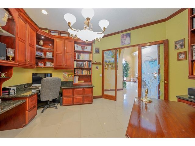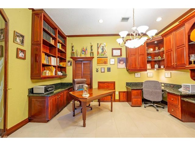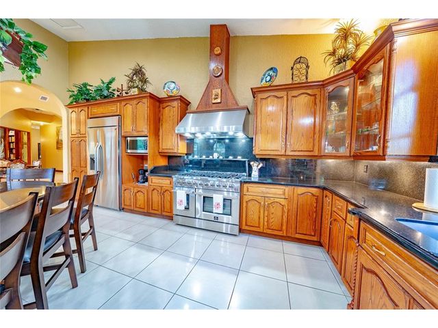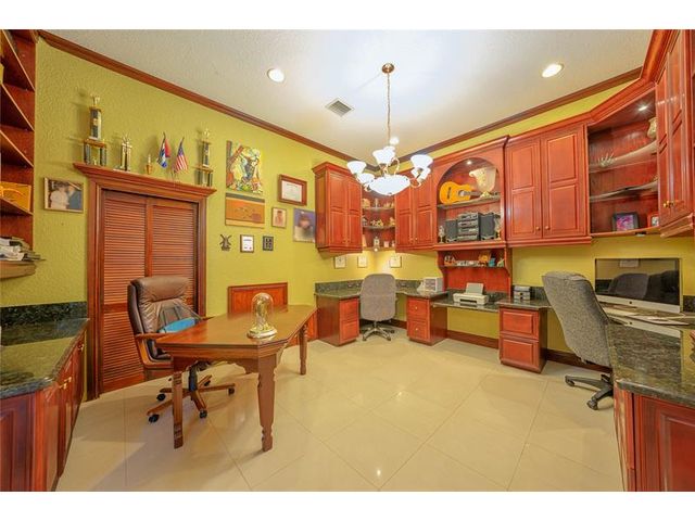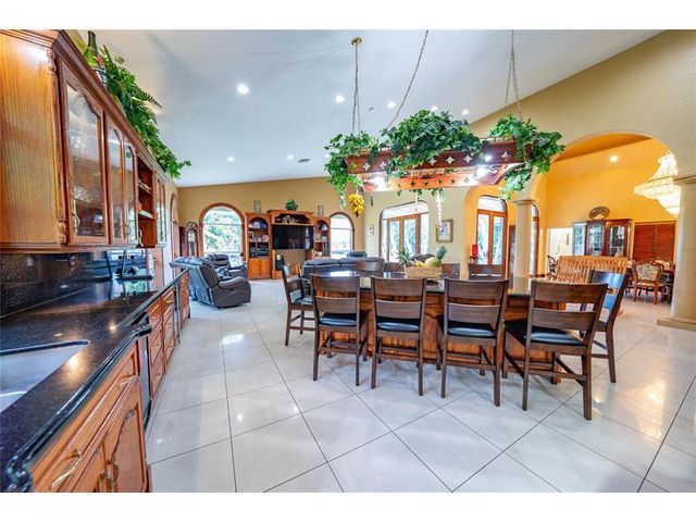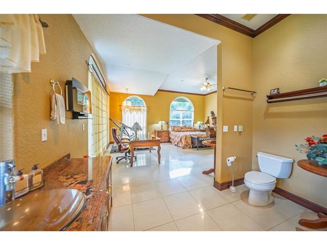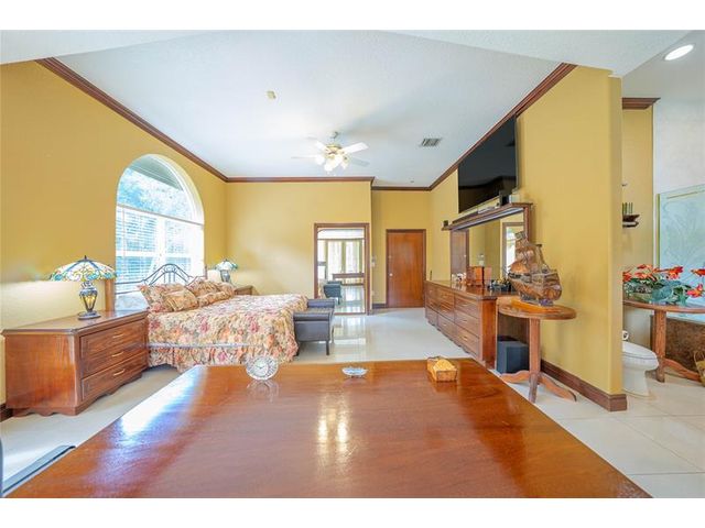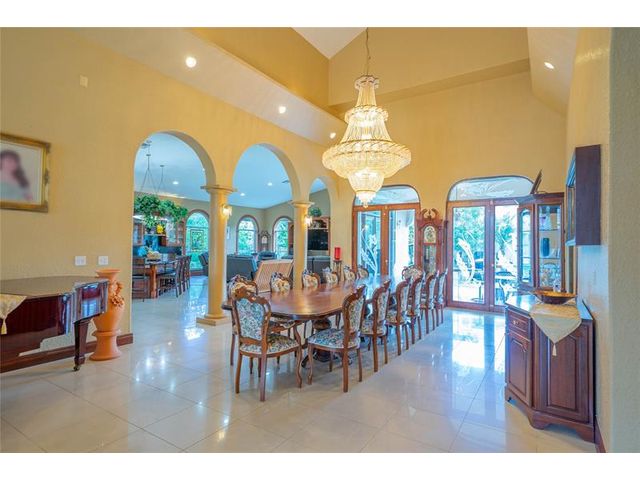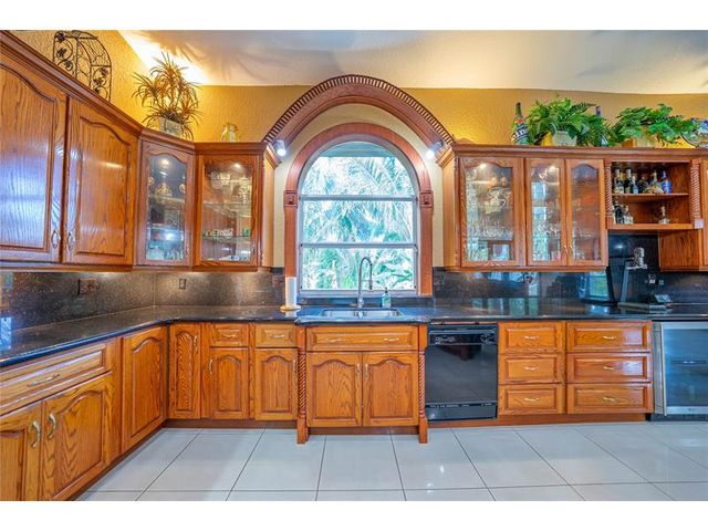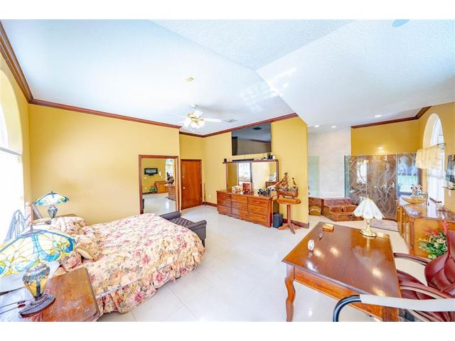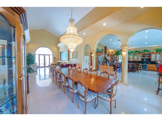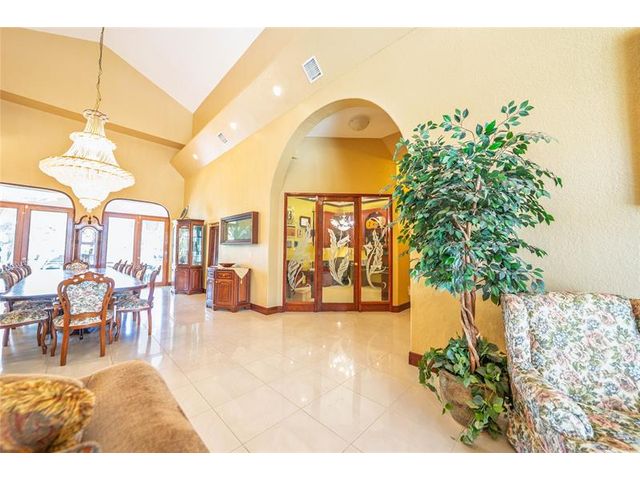 In the desirable community of Southwest Ranches, this custom Spanish-style estate sits on 2.35 acres and was built to last with reinforced concrete and timeless craftsmanship. The 3,400+ sq ft main home features 3 beds, 3 baths, an office, and vaulted ceilings up to 24 ft. The chef’s kitchen showcases oak cabinetry, black granite, a 48” gas range, oversized refrigerator, and a 10-seat island perfect for entertaining. The dining area easily fits a 14-seat table with room to spare. Enjoy a 51-ft covered lanai, full-house diesel generator, dual HVAC systems, Electrical roll-on hurricane shutters, RV portico, city water, fruit trees, and room to add a pool. A 50x60 ft detached garage includes four 1/1 in-law suites. The house is being sold as-is.