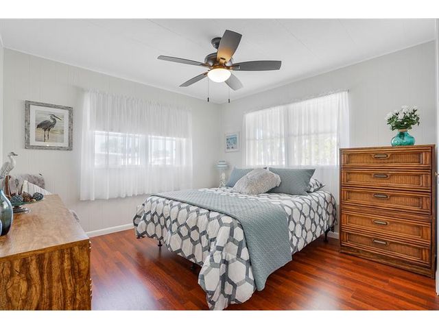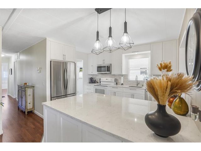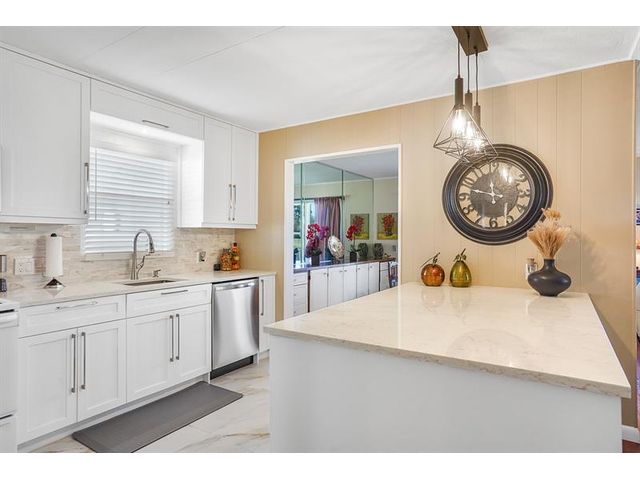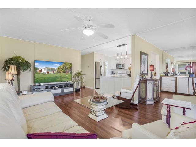 Welcome home to your stunning 2 bedroom, 2 bathroom mobile home in 55+ Park City Estates, where you own the land! Enjoy your renovated open concept layout featuring a beautiful white kitchen with kitchen island with quartz countertops. Other updates of this home include renovated flooring, updated bathrooms, screened in porch, and aluminum roof. This beautiful home features a lovely view right on the golf course. Additional storage shed provides extra space for all your needs. Don't miss this opportunity to make this beautiful home your very own.