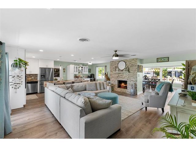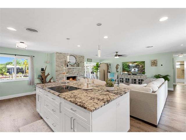 Wow! Stunning 3/2 w/Ocean Access. Bright, upgraded open layout w/cozy fireplace—perfect for family living + entertaining. Gorgeous newer kitchen w/granite tops, SS appliances, abundant cabinetry, large island ideal 4 gatherings + separate bar area! New flooring thruout, recessed lighting + modern finishes—totally move-in ready. Brand-new dock, reinforced seawall, 1-yr new roof, newer A/C, full hurricane protection w/impact windows + doors; only 2 small doors w/shutters (patio + side garage). Expansive new backyard deck + spacious fenced yard overlooking waterway + your private dock. Garage features epoxy flooring + smart storage + New Water Heater! A true boater’s dream—roll out of bed + hop on your boat for the perfect day. Close 2 parks, schools, Airport, highways, Hard Rock Casino+ more