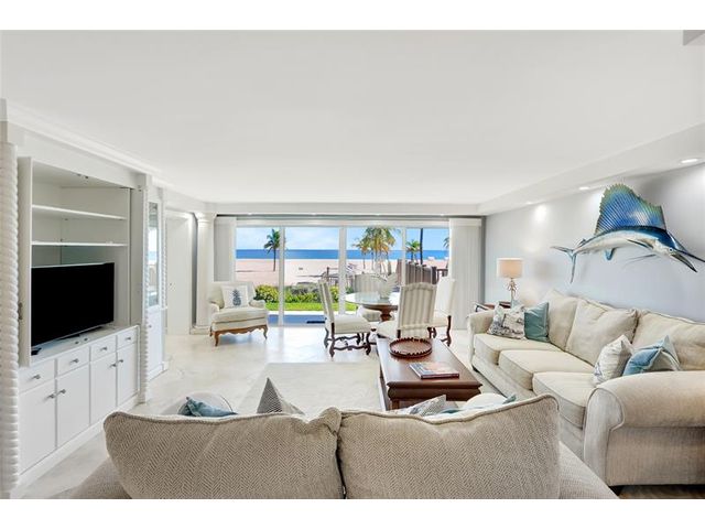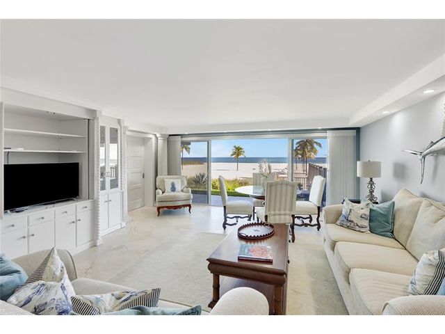 Extraordinary opportunity to own nearly 3000 sq ft of direct oceanfront in exclusive boutique bldg situated on widest stretch of beach. Rare double residence encompasses 4 bedrms, 4 full baths, 2 fully equipped kitchens, 2 expansive beachfront terraces, framing breathtaking panoramic ocean views. Designed for privacy & flexibility, it is ideal for multi-generational living, entertaining or a coastal retreat offering a blend of sand, surf, sun & palm trees steps from your patio. Unparalleled in value & size, no other property in this prestigious neighborhood offers such extensive sq footage directly on sand. Perfectly positioned adjacent to LagoMar Beach club & resort w/memberships on approval. Beachfront living at its finest. Structural cert available. Assoc reserves fully funded.