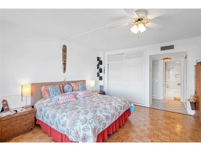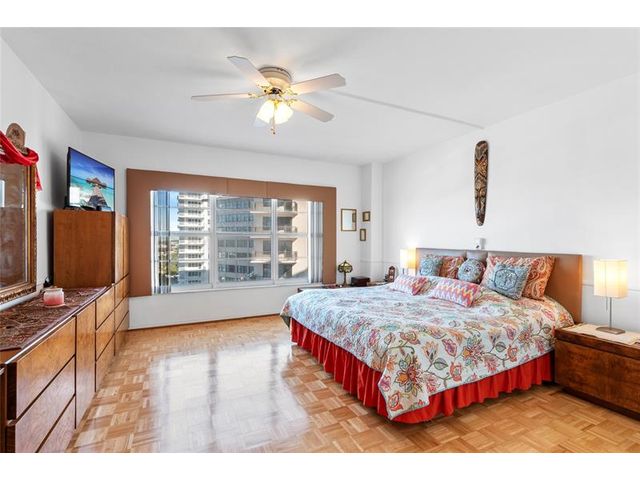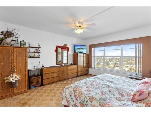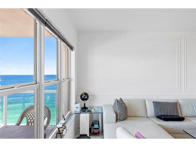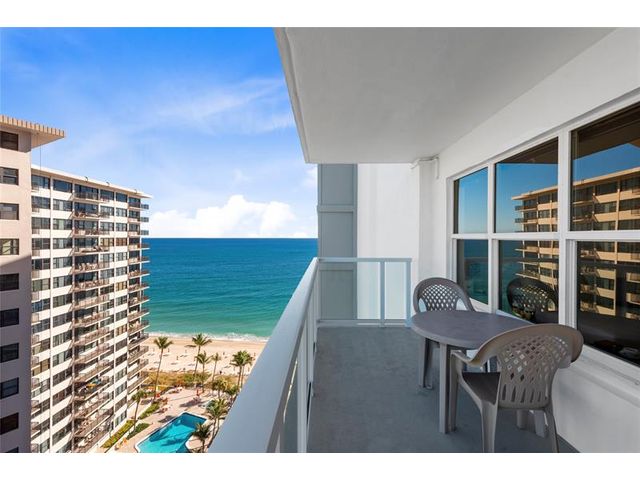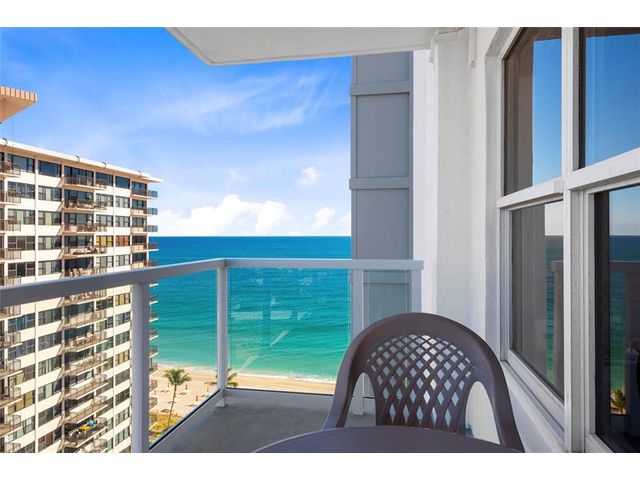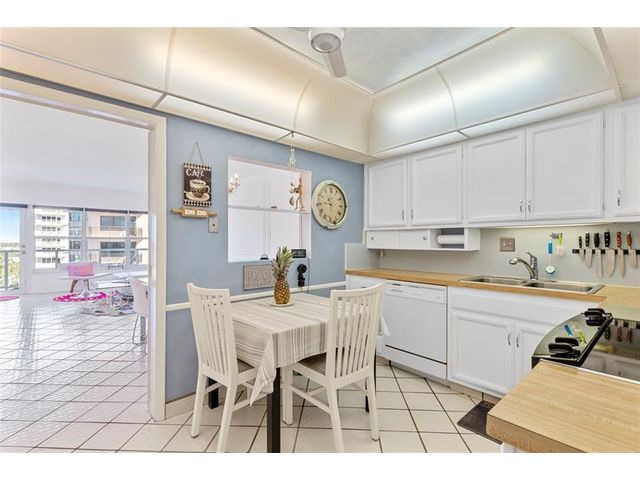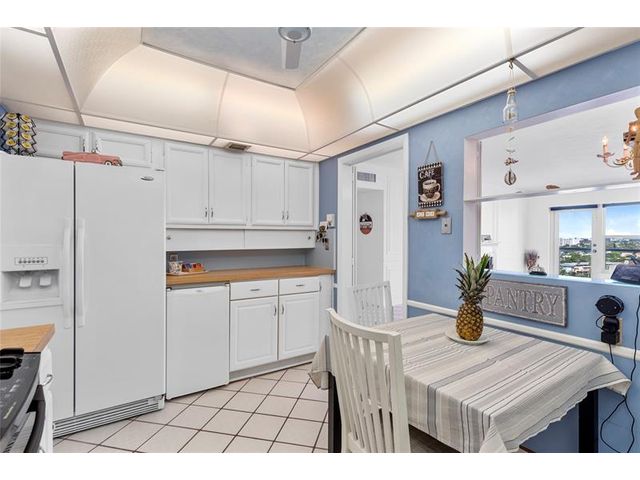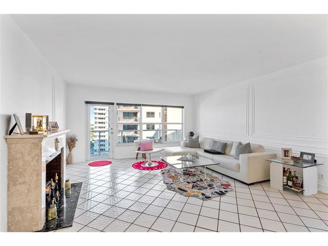 Cozy condo with vintage vibe in a building w/the elements of modern luxury living. Quaint Country kitchen, fun retro guest bath. Tub/shower w/original marble in Master bath, faux fireplace in living room, lots of closet space. Light color tile throughout; wood floor in the bedroom. Ocean & Intracoastal view. The low price gives you the choice to move in & enjoy or remodel while you take advantage of the resort-style amenities; beachfront swimming pool, beach/pool lounge & umbrellas, laundry room, patio w/an outdoor kitchen, fitness center, 24-hour reception/security & much more. Furniture negotiable. Tandem garage parking space sold separately. Perfectly situated close to restaurants, grocery stores, salons, pharmacies, & shopping. Monthly maintenance fee inc. cable & high-speed Internet.