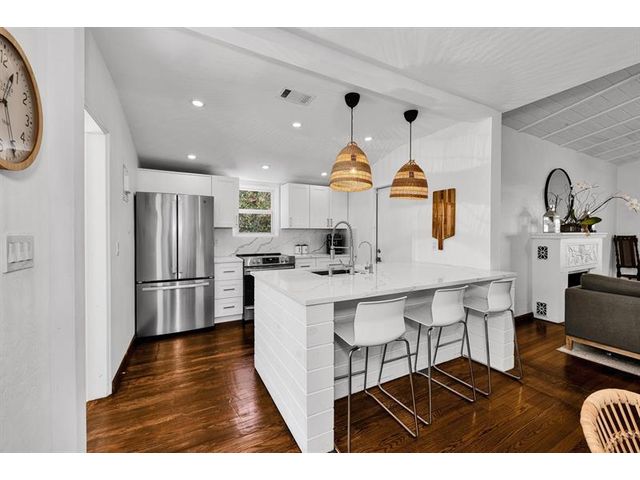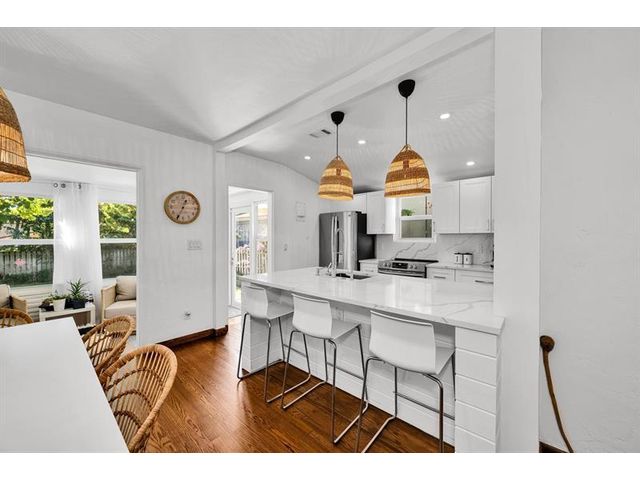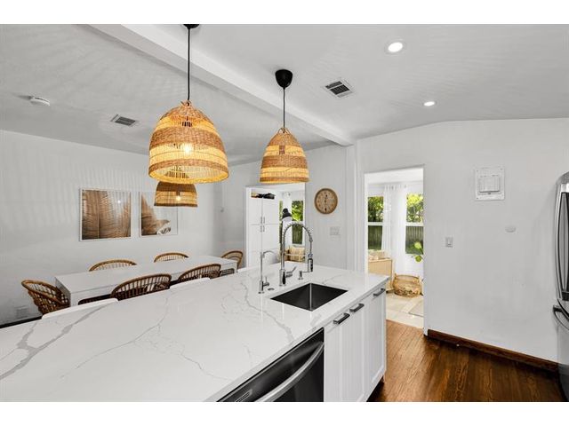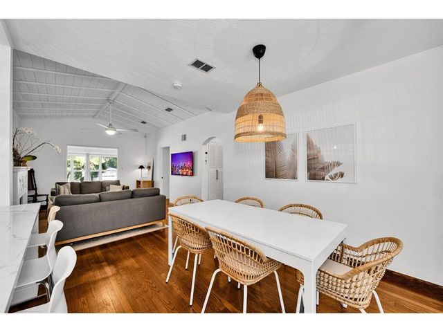 Feel the character the second you walk into this totally renovated 1930s gem with high beamed ceilings, original solid hardwood floors, fireplace with a gorgeous mantle, totally remodeled new kitchen with high end appliances and quartz counters, beautiful newer bathrooms, laundry room, attached garage and a large private fenced backyard with a big patio. Located on our southeast side in the best section of Victoria Park on a quiet street close to the beach, restaurants, shops, Las olas, downtown, airport and everywhere you want to be. In addition to the 2 spacious bedrooms there is a spacious living room, dining room, kitchen and two small dens. Den could easily be an office.