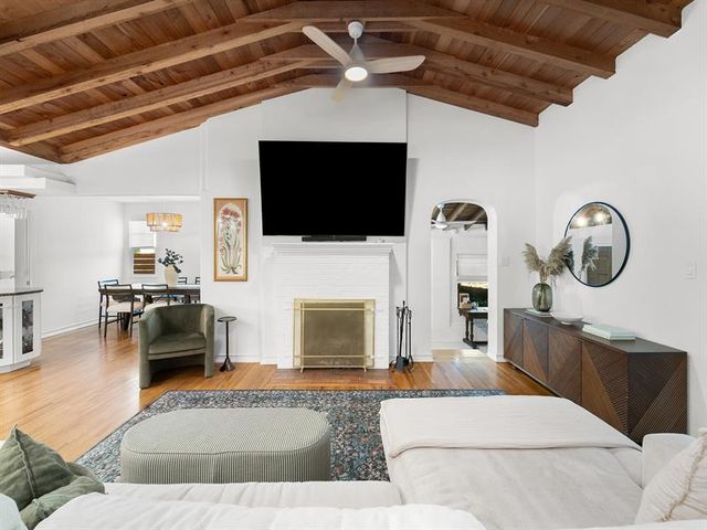 Located in coveted Rio Vista, this home offers 3 beds, 3 baths, plus a bonus room ideal as an office or den. It blends classic charm with smart updates, including impact windows, a 2018 AC, & renovated baths. Warm wood floors & two fireplaces create an inviting atmosphere throughout. The kitchen features wood cabinetry, granite counters, and a walk-in pantry, with an eat-in area overlooking the gardens. The third bedroom is currently used as a family room with cedar-beamed ceiling providing additional flexible living. Multiple doorways open to a spacious porch & landscaped backyard with updated hardscape, perfect for entertaining. A Tesla charger adds convenience. Close to Las Olas, downtown, & 17th Street, this property offers comfort & an exceptional location. Sq. Ft. from IMAPP.