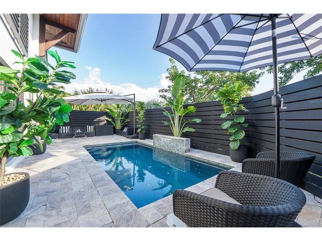 A truly unique modern home in the heart of Victoria Park, this 5-bedroom, 4.5-bath residence blends sleek design with advanced smart-home technology. Just blocks from Las Olas & Holiday Park, it includes a private 1 bedroom, 1 bathroom apartment with its own entrance - perfect for guests, rental income, or office. The outdoor oasis features a heated saltwater pool, Wolf summer kitchen, custom pergola with gym area, & contemporary landscaping. Inside, a Poggenpohl kitchen with Miele, Wolf, Sub-Zero, & Duravit appliances flows seamlessly into living areas highlighted by a floating glass staircase, custom bar, & air-conditioned 2 car garage. Complete with a whole-house generator, Culligan water system, & Crestron/Sonos automation, this home is truly one of kind!