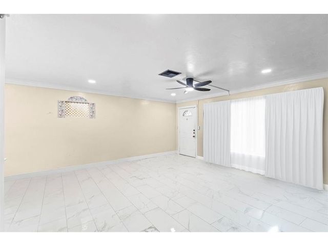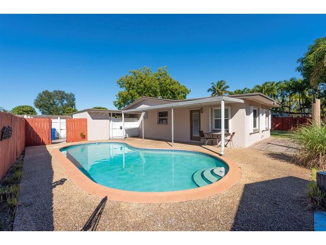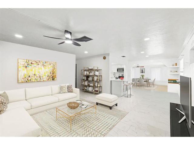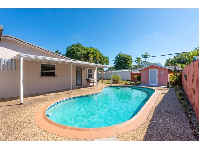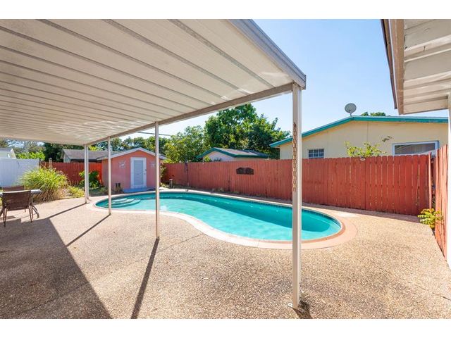Welcome to this charming and well-cared-for 3-bedroom, 2-bath home located on a quiet interior street close to shopping, schools, and major airports. The home features a fenced pool with a covered patio area—perfect for relaxing or entertaining—and a spacious backyard complete with a storage shed. Inside, you’ll enjoy a recently updated kitchen with modern finishes and new appliances, along with new porcelain tile flooring throughout the main living areas. Additional highlights include crown molding, a tankless water heater, an indoor washing machine, and extra storage/workspace in the carport area. The large front porch offers a welcoming space to unwind and enjoy the breeze. A fantastic opportunity to own a well-kept home in a desirable, family-friendly community.