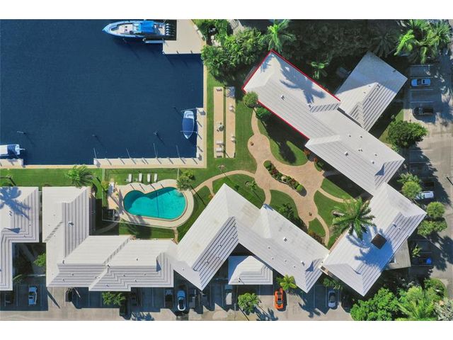 Exquisite one-of-a-kind waterfront residence, completely renovated and re-designed in 2020. Two units combined into one expansive home showcasing stunning wide-water views within a boutique mid-century modern waterfront community. Refined interiors include wide-plank hardwood floors, impact windows/doors, plantation shutters, with abundant natural light. Open, custom chef’s kitchen features quartz counters, center island, Bertazzoni appliances (two ovens), and built-in wine/beverage coolers. Oversized primary suite w/ sitting area, separate den w/ built-ins, & full laundry room w/ Miele washer/dryer. Two parking spaces (fits 4 cars tandem). A rare offering—luxury, character, and unmatched waterfront living, all moments from Coral Ridge Yacht Club, Galleria Mall, fine dining, and the beach.