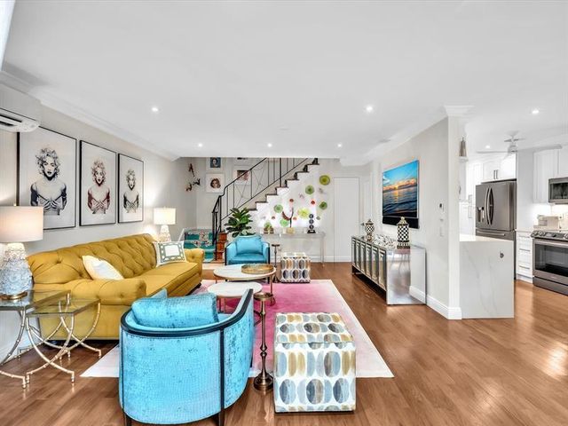 Just steps from Wilton Drive, this exquisitely renovated townhome delivers sophisticated living at its finest. The designer 2022 kitchen features Quartz countertops, premium Samsung appliances, and a new washer/dryer. Rich real wood flooring flows throughout, complemented by a nearly silent 2023 split A/C system offering tempature control for each room. Outside, a refined front lounge and manicured garden with app-controlled sprinklers create an elegant retreat. Relax under the retractable awning and enjoy the landscape lighting at night. Impact windows and doors ensure security and serenity. Custom closets enhance every bedroom, with the primary suite offering a walk-in and discreet pull-down attic storage with an office area.