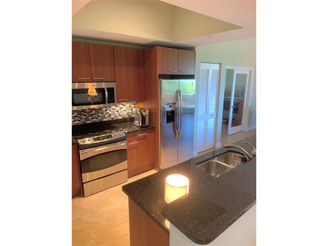 Beautifully renovated 4th floor unit with quiet tree top and pool views located on Wilton Drive - the original interior 2nd bedroom has been incorporated into the living and dining rooms resulting in an oversized great room with an open concept kitchen and sliding doors leading to a large and renovated open balcony; both bathrooms have been renovated as have the floors with porcelain tile throughout; this unit is meticulously cared for and flooded with light; it includes 2 parking spaces on the coveted first floor of the garage and amenities include fully equipped state of the art gym, heated pool, barbecue area, and secure designer lobby with maintenance staff on premises. Live on Wilton Drive and enjoy its restaurants and nightlife but come home to this peaceful, meticulous condominium.