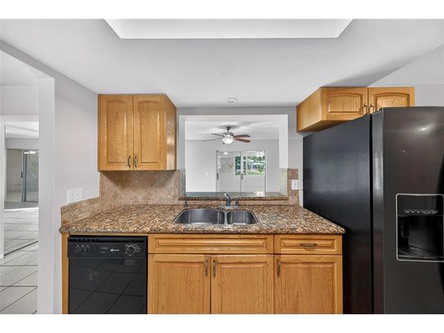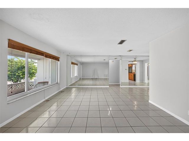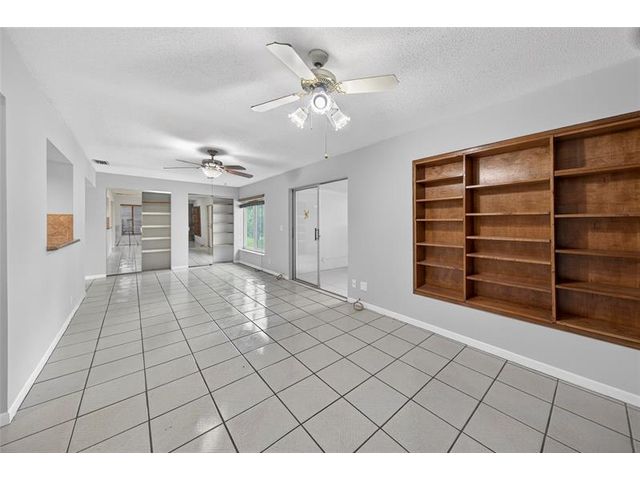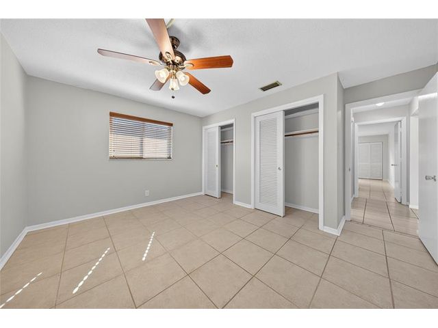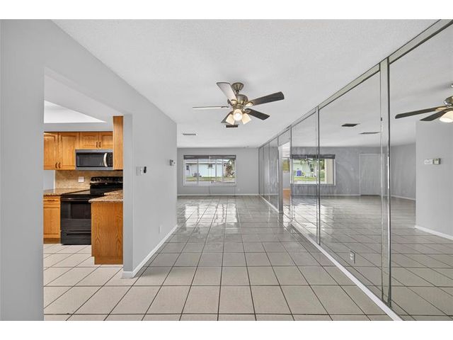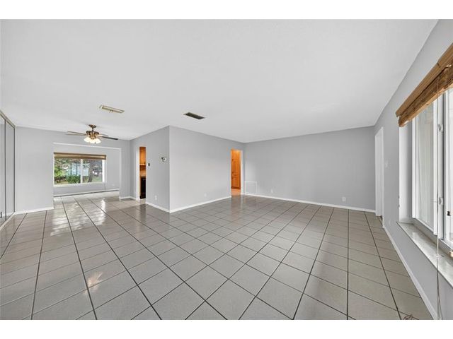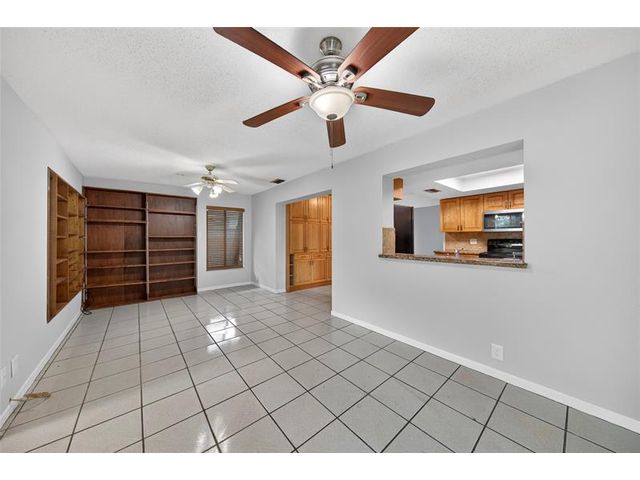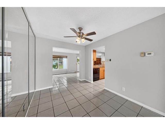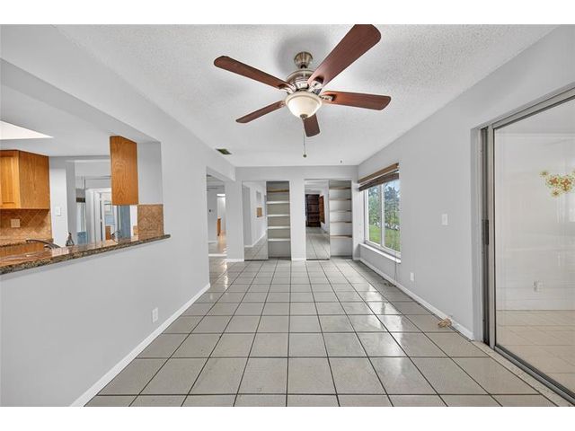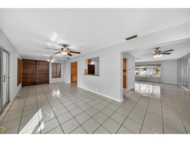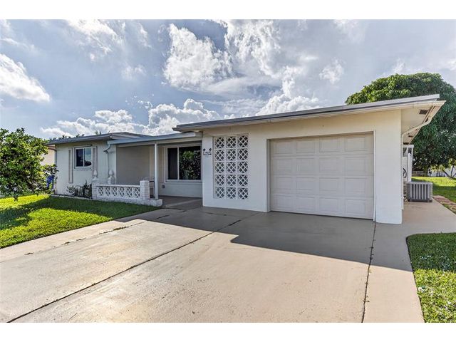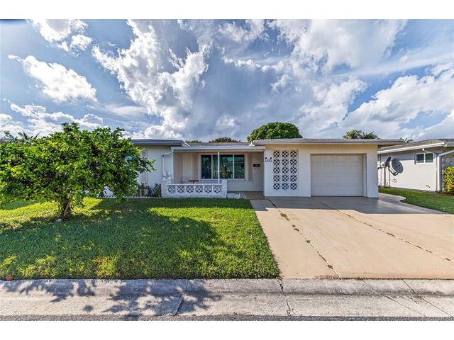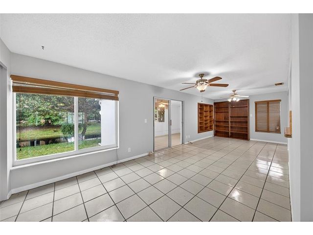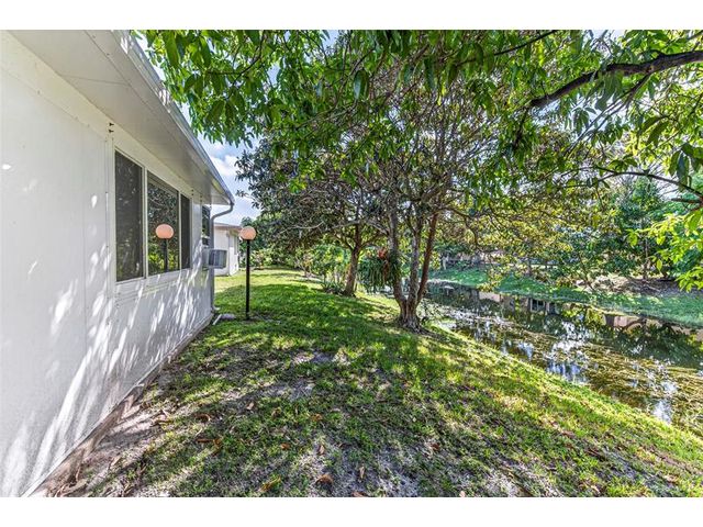 Welcome to this charming 2-bedroom, 2-bath waterfront home in the desirable 55+ Paradise Gardens community. Just steps from the clubhouse and pool, this home features a 1-car garage, spacious living and dining areas, and a kitchen with wood cabinets, granite counters, travertine backsplash and tile flooring throughout. Enjoy peaceful water views from the large enclosed and covered patio—perfect for morning coffee or relaxing evenings. The sprinkler system draws from the lake, and the low HOA fee includes lawn mowing and exterior painting every few years. Residents enjoy resort-style amenities, including a pool, clubhouse, and exercise room. Ideally located near shopping, dining, and major highways, this home offers both comfort and convenience in a vibrant, well-maintained community.