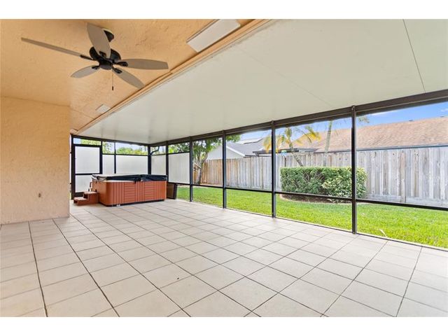 Beautiful and rare 4 bedroom, 2.5 bath, split bedroom floorplan with 2 car garage. This single story home is on a quiet cul-de-sac street with no through traffic in desirable Welleby subdivision. BRAND NEW ROOF JUST INSTALLED! All bathrooms fully upgraded with granite. White kitchen with granite countertops, newer appliances, and pantry with custom pull-out shelves. Big master bedroom with walk-in customized closet. Well maintained hot tub on oversized patio is spectacular & perfect for entertaining or relaxing. Large fully fenced yard. Accordian shutters on all exterior windows and sliding doors for hurricane protection. Professionally landscaped exterior on generous lot. No annoying association restrictions, minimal annual fee. Your new life starts today. Don't miss out.