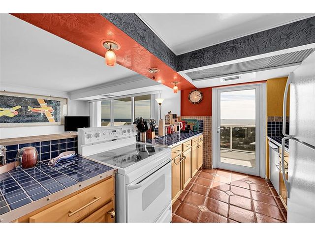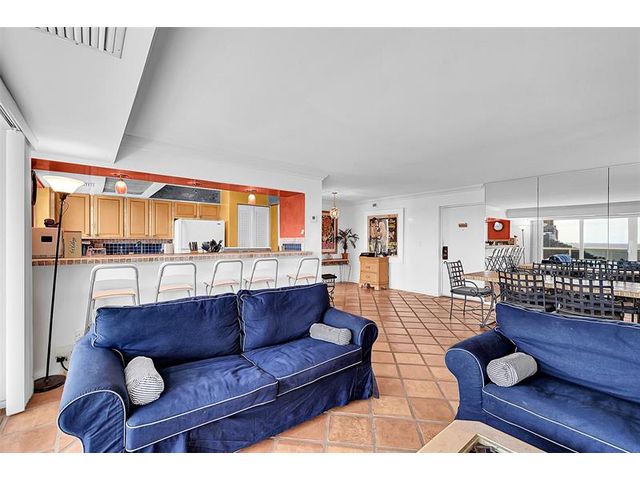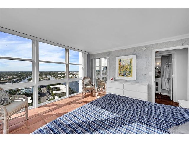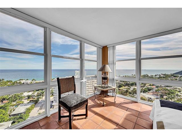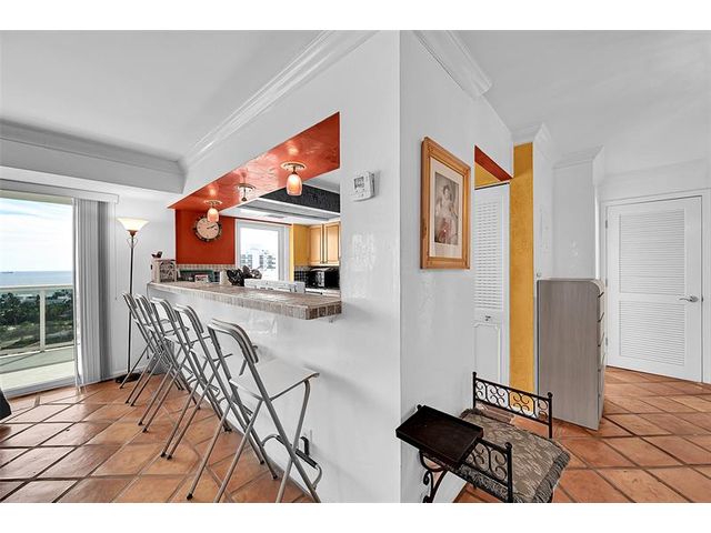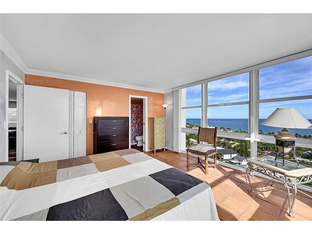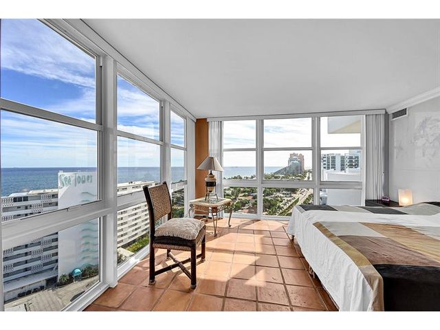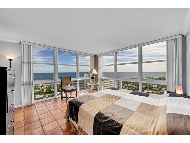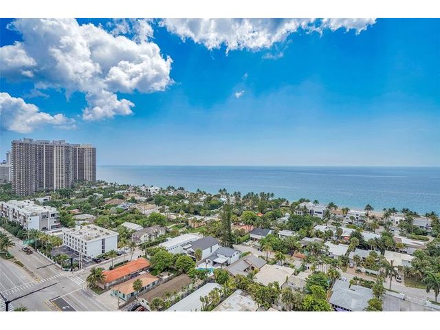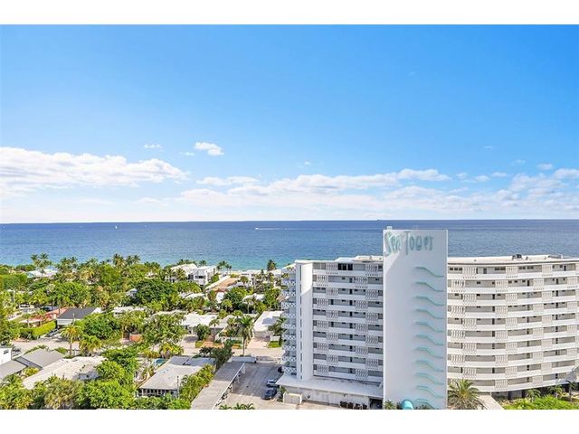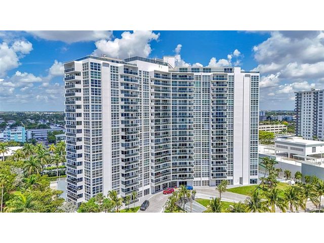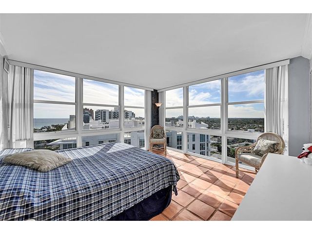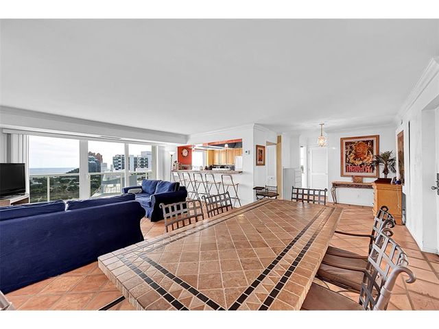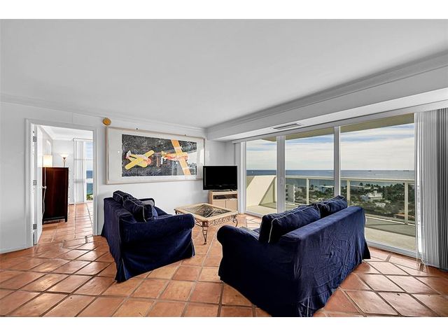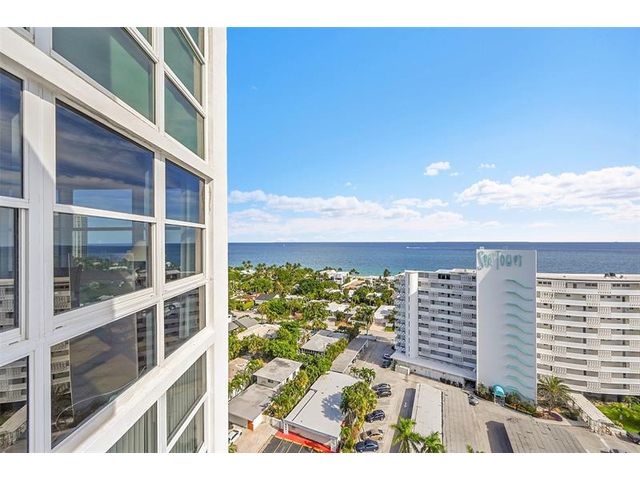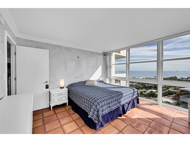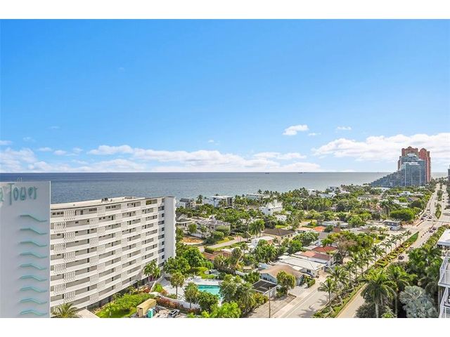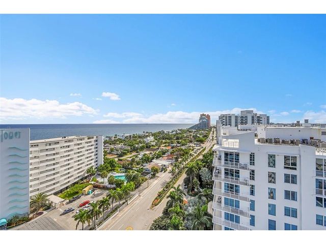 Rarely available south-facing end unit on an upper floor. This 2 bed 2 bath condo offers 1,200 square feet of bright living space with imported Italian terracotta tile flooring throughout and hurricane impact windows. Enjoy an expansive balcony with sweeping ocean, Intracoastal, and city views. The spacious living area features crown molding and abundant natural light, while the open kitchen includes tile countertops and a breakfast bar. The primary suite offers floor-to-ceiling windows, a walk-in closet, and an ensuite bath. Additional features include an in-unit washer and dryer. Building is undergoing a $20 million improvement project in preparation for its 50-year recertification. Amenities include a rooftop pool and fitness center, just minutes from beaches, dining, and nightlife.