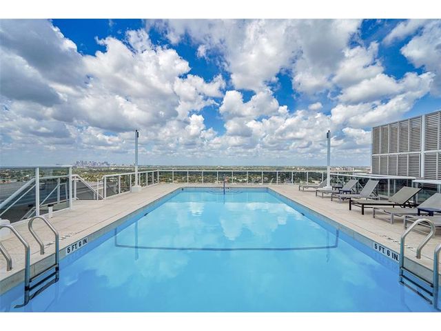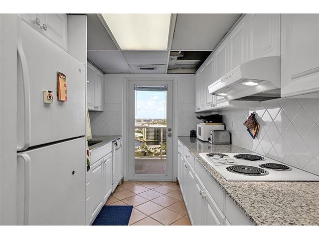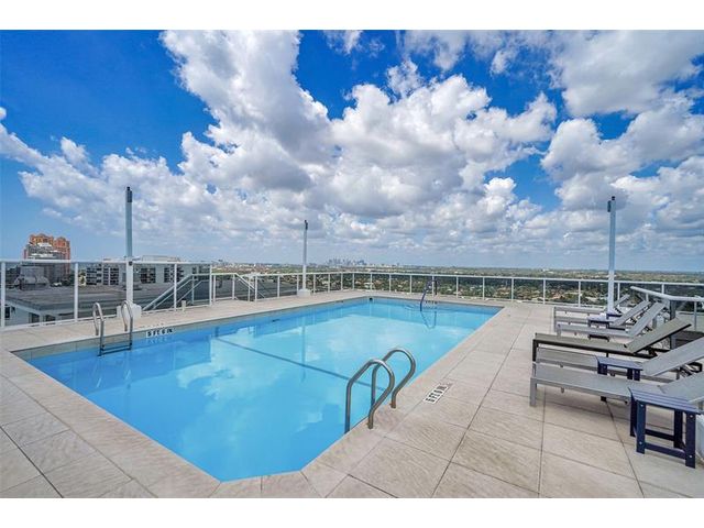 Spacious 2BR/2BA condo on the 18th floor with city and Intracoastal views from every room. This 1,100 SF residence offers light tile flooring, textured ceilings, and a kitchen with white cabinetry and light countertops that opens to a dining area with an eclectic chandelier. Both bedrooms feature floor-to-ceiling hurricane impact windows, filling the home with light. The primary bedroom includes a walk-in closet. Enjoy a private balcony with sunsets to take your breath away and yachts passing day and night. In-unit washer/dryer. Building undergoing a $20M capital improvement project for its 50-year recertification. Amenities include a rooftop pool and fitness center. Steps from a brand-new Publix and a short walk to the beach, shopping, and dining.