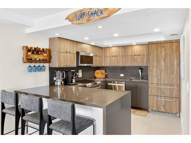 Tranquil Seaside Haven Set directly on wide private beach offers the ultimate coastal escape. Spacious 2-bdrm, 2-bath fully renovated residence creates the perfect beachfront getaway—move right in & enjoy effortless luxury living. The open, custom kitchen features generous counter space, while large, neutral porcelain tile flows thruout the home. Both bdrms are oversized, & can accommodate 2 beds & offer en-suite baths. Expansive balcony provides breathtaking panoramic views of ocean, sand, & swaying palms. Your own island paradise. This one-of-a-kind boutique building uniquely owns the valuable beachfront land it occupies. Ideally located next to the renowned LagoMar Beach Club & Resort, residents have access to restaurants, lounges, pools, & spa, w/ memberships available on approval.