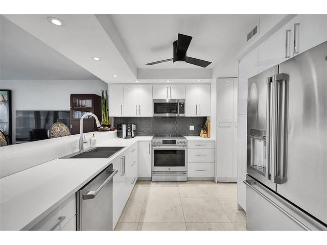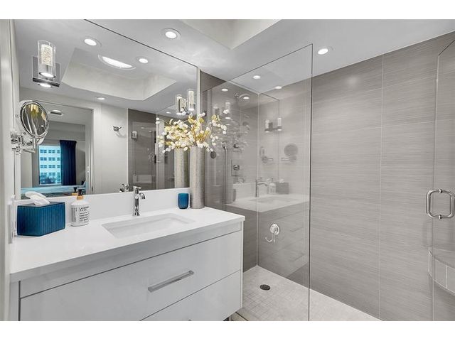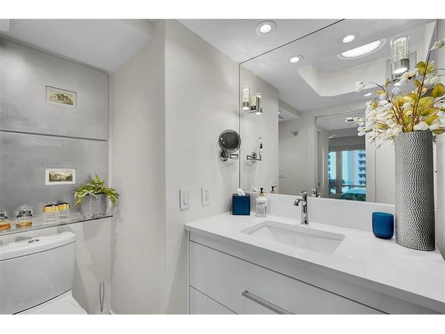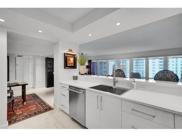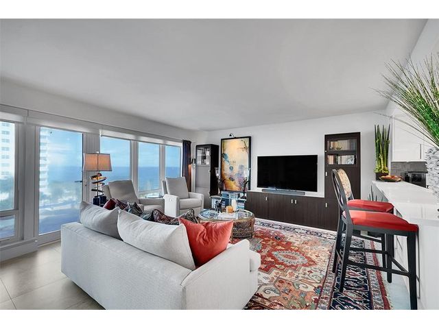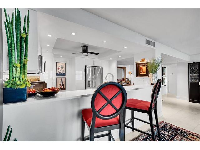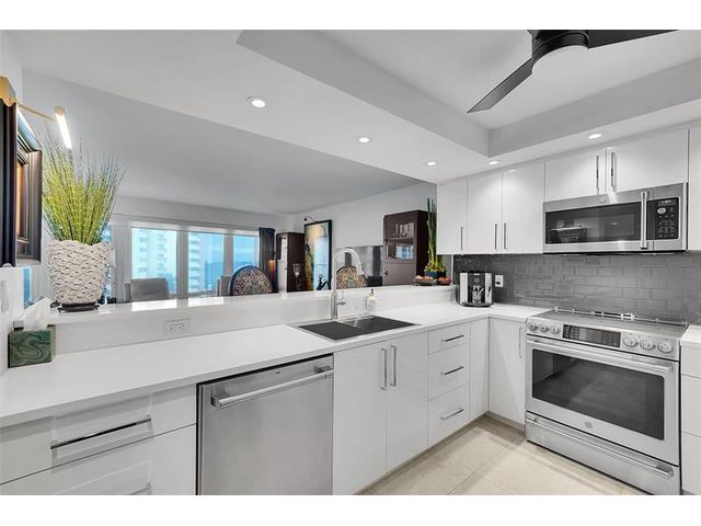Most beautiful condo for sale in the building by far! This unit's orientation allows you to walk in and see a wide, expansive blue ocean not blocked by another building. Expertly renovated with kitchen opened to the living space & view. Brand new washer/dryer and ceiling led recessed lights are just a few new features. Kitchen has quartz countertops with induction cooking. All closets have built in systems as well as an additional wardrobe closet in bedroom. Impact windows & Door Too! The large balcony lets you enjoy ocean breezes without the direct hot sun beating down on you. Secure garage parking close to the elevator with 24hr doorman & security. Full amenties include gym, sauna, community room and private beach with chairs & Umbrellas. New Resort style pool and deck underway.