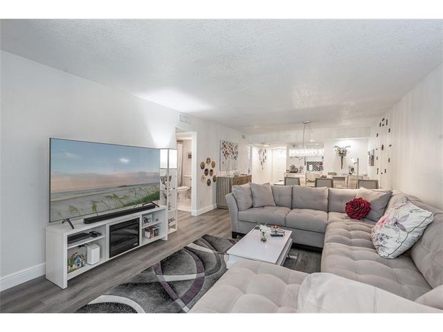 BEAUTIFULLY UPDATED 2BR/2BA bright corner apartment. Enjoy sunsets overlooking Par 3, lush, 11th green. Wide Open Kitchen features high ceiling, glass tile backsplash and large snack bar. Fully & very nicely furnished. 100% vinyl plank flooring throughout. 2 updated showers. 3 TV's. Recreation Lease PAID IN FULL. Amenities include Restaurant, Billiard Room, Bbq/Picnic Area, Clubhouse, Courtesy Bus, Exercise Room, Heated Pool, Library, Putting Green, Sauna, Shuffleboard, Tennis, Pickle Ball, Vehicle Wash Area, Electric Car Charging Station. Close to shopping, dining & highways. 15 min. to the beach. COMFORTABLE AND TURNKEY! ALL YOU NEED IS YOUR TOOTHBRUSH! (NEW ONE TO BE PROVIDED)