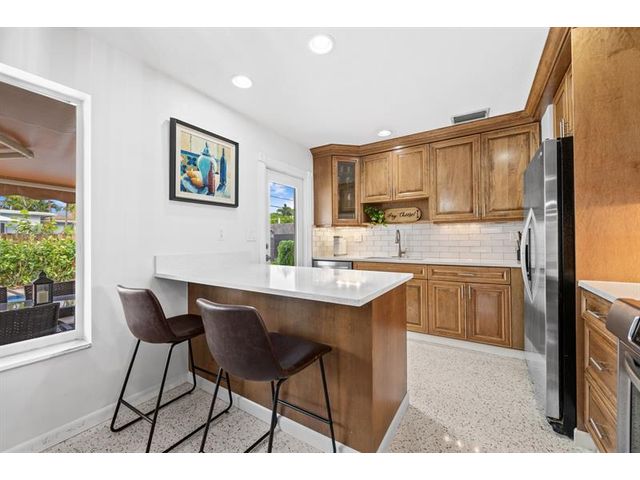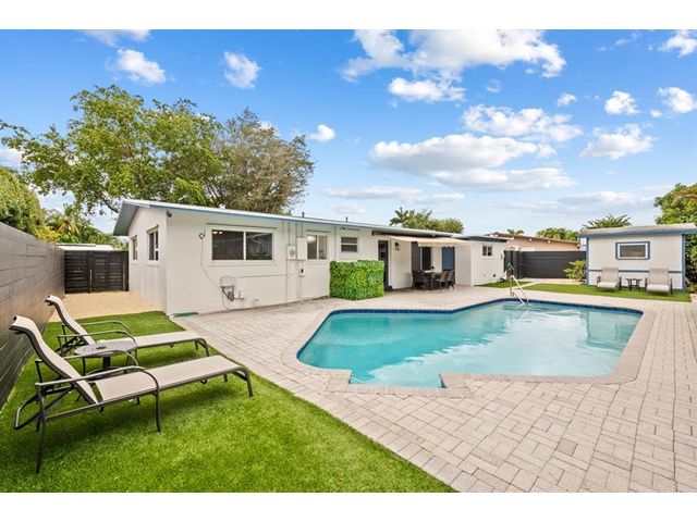 Step into easy, relaxed Wilton Manors living in this mid century modern 3BD/2BA pool home where classic terrazzo floors, refinished in 2025, meet modern comfort, with a 2022 roof. Natural light fills the open living spaces, creating a warm and inviting atmosphere from the moment you arrive. Outside, your private backyard retreat invites slow mornings and effortless evenings with a resurfaced pool, fresh pavers, lush landscaping, artificial turf, and newer fencing for peace and privacy. A covered carport with Tesla charger, and oversized storage shed add everyday convenience. Offered fully furnished, this move-in-ready home is ideal for investors or end users seeking a turnkey opportunity minutes from Wilton Drive, beaches, and dining—this is a home that feels as good as it looks.
