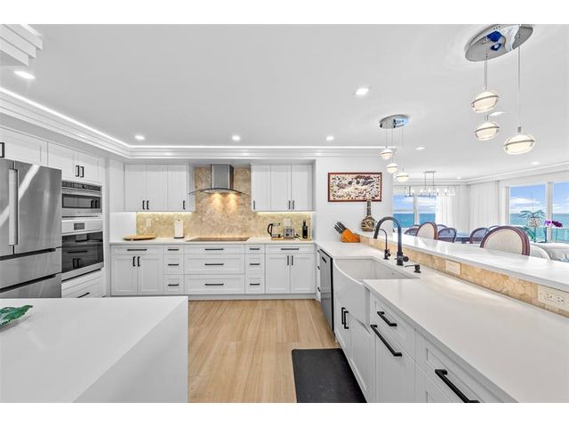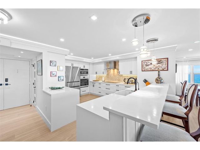 No expense spared in this Exquisitely renovated oceanfront 3 bedrooms 2.5 baths unit in Southpoint. This exceptional condo has been thoughtfully and flawlessly redesigned, with meticulous attention to every detail. All completed with approved building permits. The direct oceanfront home features an open-concept kitchen with brand-new high end appliances, quartz countertops, elegant porcelain flooring throughout, recess lighting, electric shades, new light fixtures, impact windows, water filtration system and beautifully updated bathrooms. The unit also includes new washer/dryer, two garage parking spaces and storage. Bring your toothbrush!