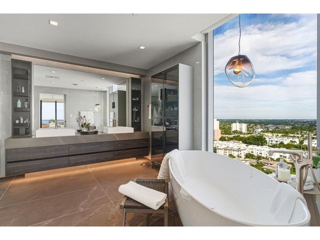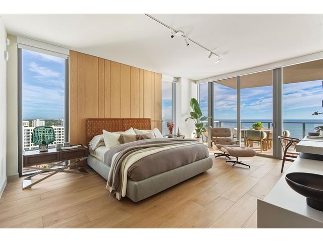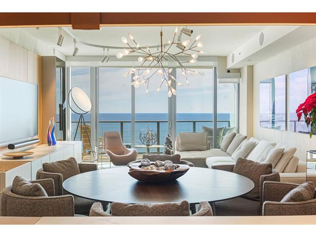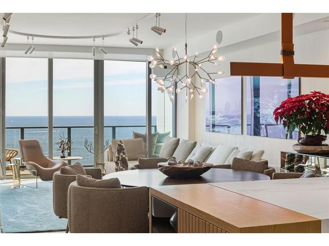 Designer-curated North East Corner residence! This sought-after floor plan features 3 beds, 3.5 baths plus den, offered turnkey fully furnished, designed by Aitken Studio with Italian furnishings by Minotti & Flexform, KETTAL outdoor pieces, and custom lighting by FLOS. Bespoke millwork, custom closets and window treatments throughout. Floor-to-ceiling glass open to expansive sunrise and sunset balconies. Italian kitchen cabinets with porcelain countertops, Wolf & Sub-Zero appliances, gas range, wine fridge, and espresso machine. Smart home automation, integrated audio, Samsung Frame TVs, and private wine storage. Resort-style amenities include private beach with service, 2 pools, hot tub, fitness center, concierge, and 24/7 valet, minutes to dining, boat clubs, and Hillsboro Inlet.