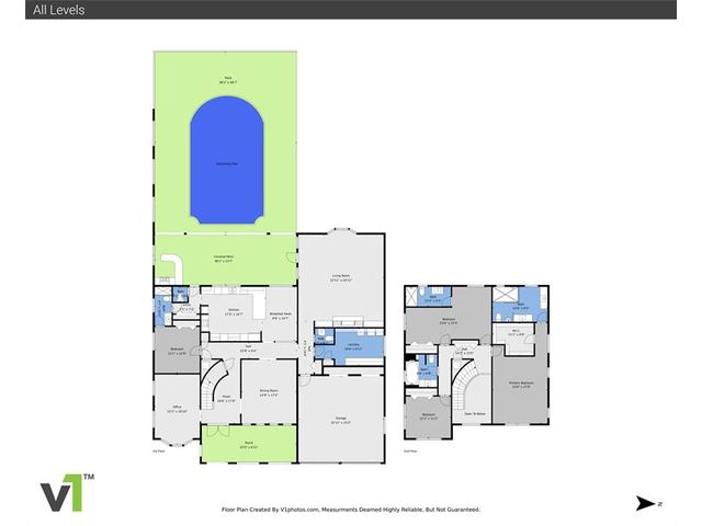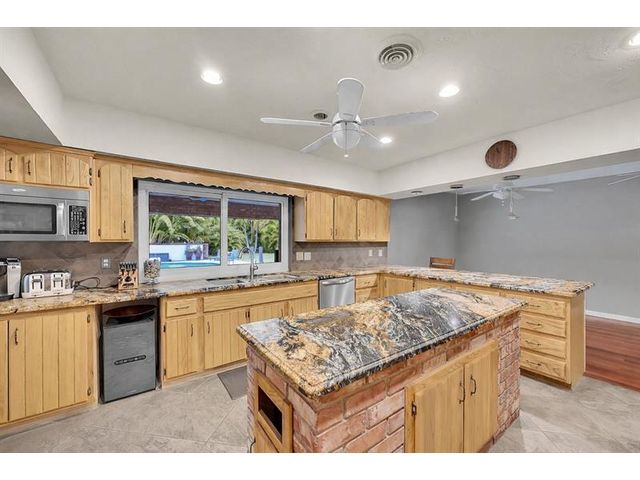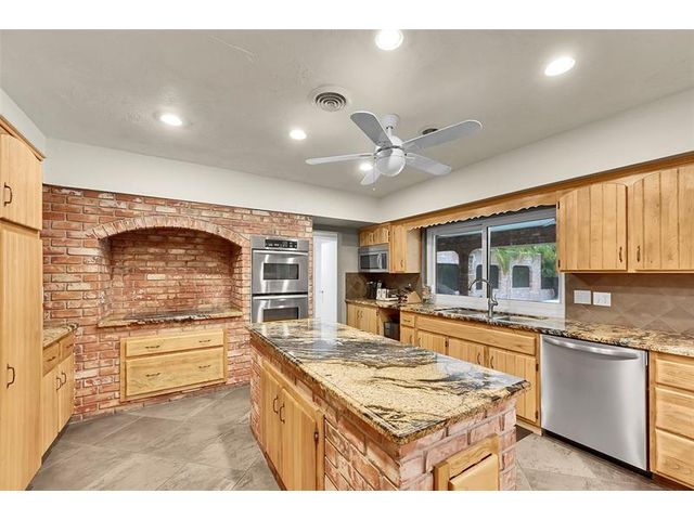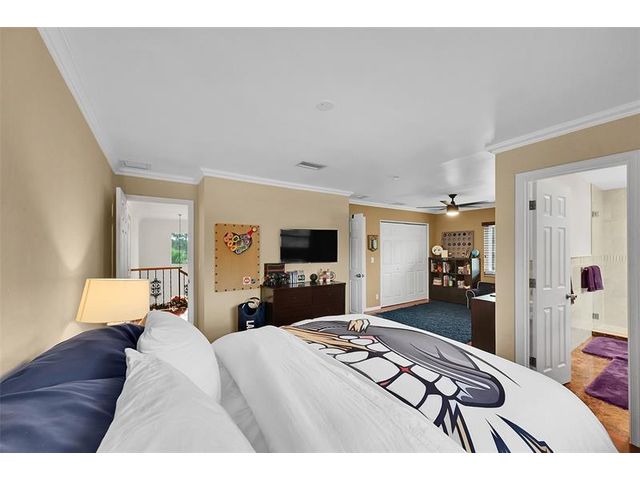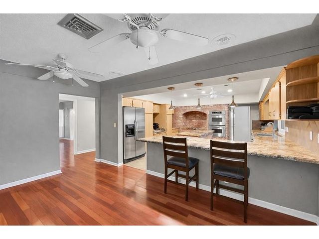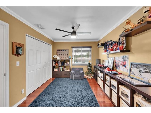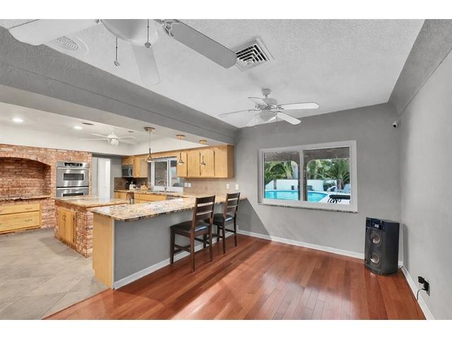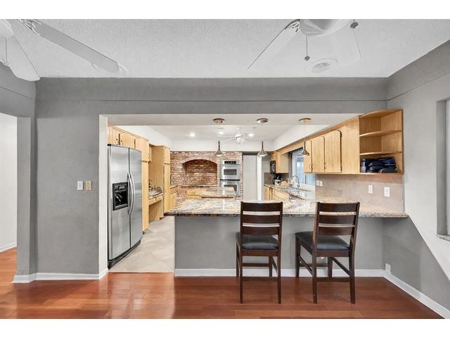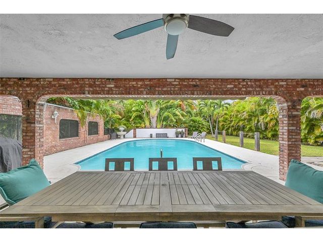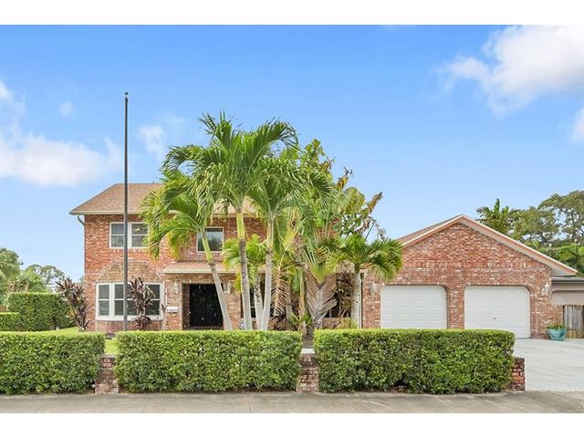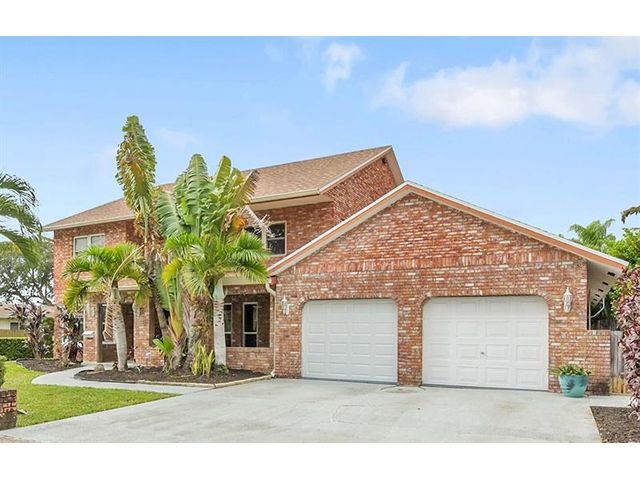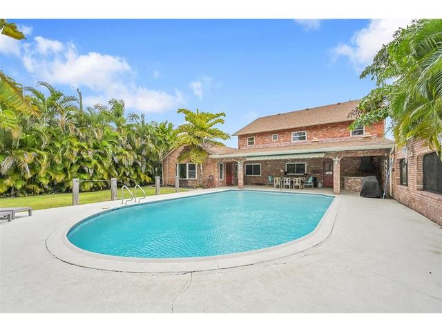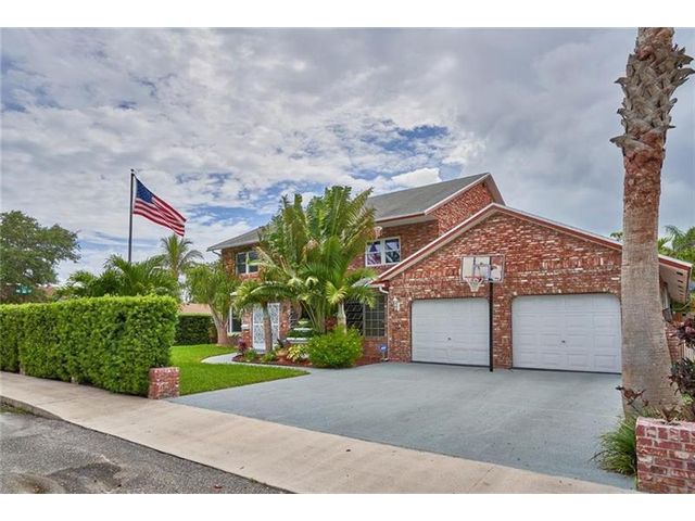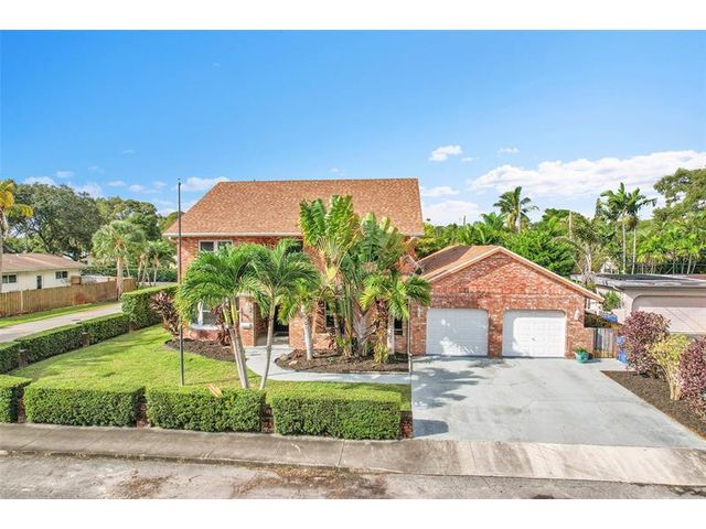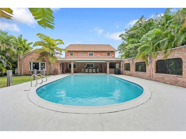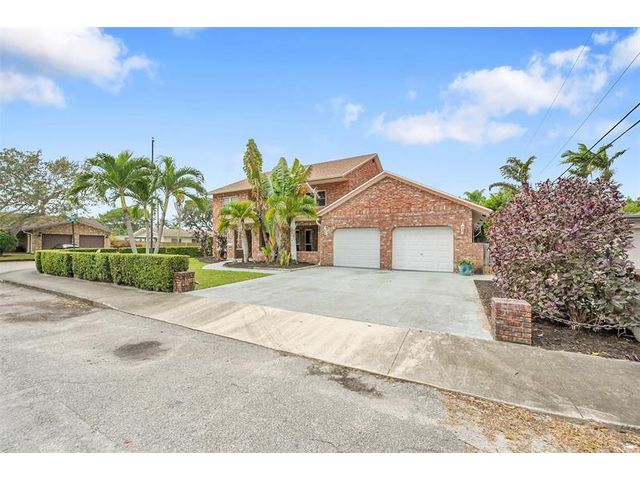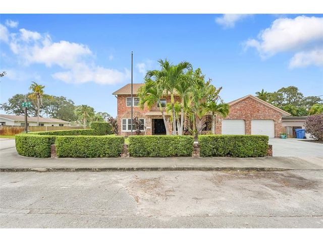 Brick estate home on an oversized, private, corner lot offering nearly 4,000 square feet under air with 4 bedrooms including 2 primary suites, 4 full and 2 half baths. Dramatic 20-foot foyer with curved staircase and high ceilings opens to expansive first-floor living and family rooms with custom fireplace feature wall. Second floor features three bedrooms including a spacious primary suite with huge walk-in closet and renovated spa-style bath. One bedroom with en-suite on the first floor plus a flexible room ideal for office, gym, or guest space. Kitchen with granite counters, center island, stainless steel appliances, double ovens, breakfast area, and separate formal dining. Oversized two car garage and huge pool. Roof 2019, impact windows, and ac units 2023.