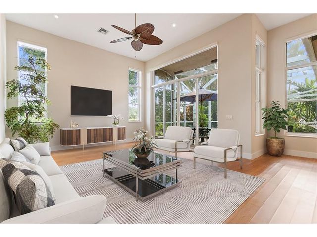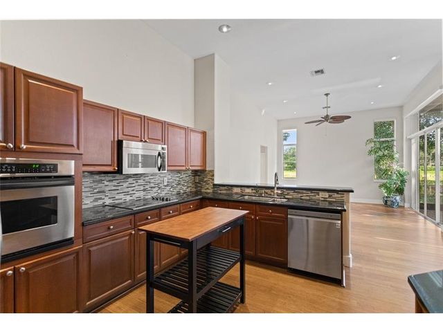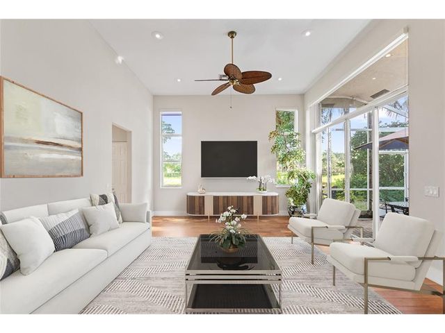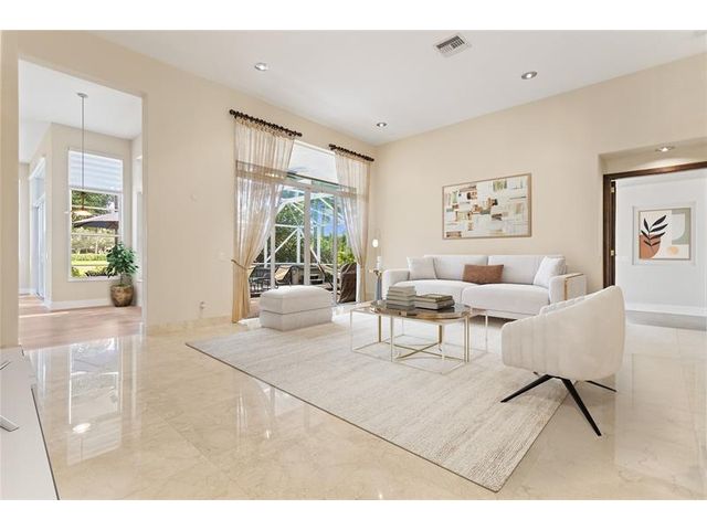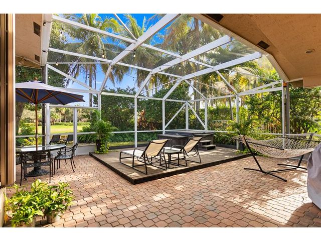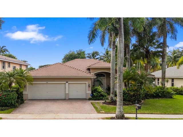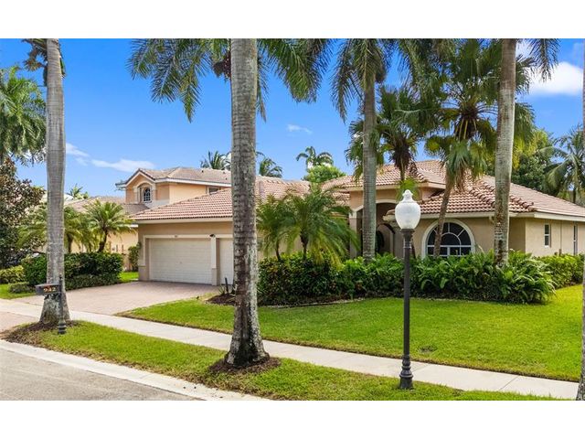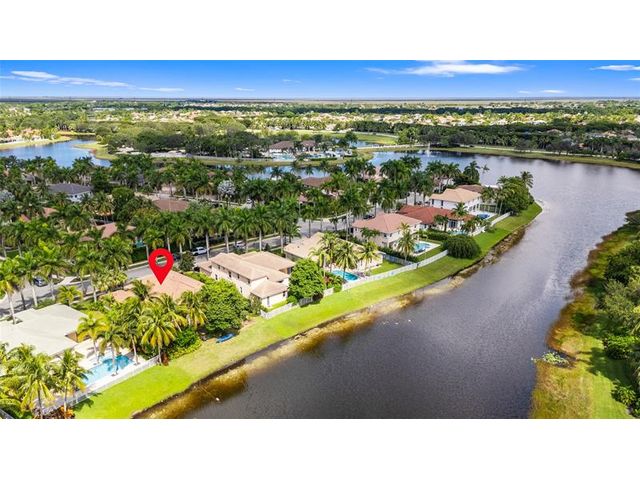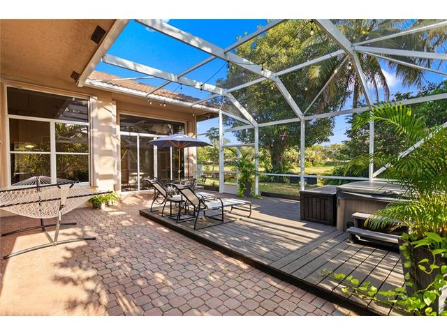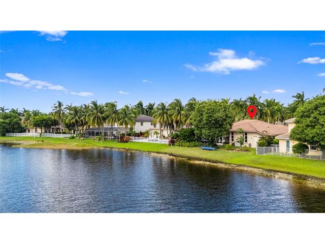 THE ONLY SINGLE STORY HOME CURRENTLY FOR SALE IN COVE III – This beautifully maintained 4-bed, 3-bath SINGLE- STORY home with a 3-car garage sits on a premium lakefront lot. The backyard faces SOUTH with serene lake views from your permitted screened enclosure (2019). Hot tub included (2019). Handmade antique primary bedroom door from South America. Custom glass work, marble and bamboo flooring throughout. All three bathrooms were updated in 2019. The kitchen features granite counters, wood cabinets and a center island. A/C from 2019. Accordion shutters, sprinkler system runs from the lake. Triple split-bedroom floor plan for privacy. Resort-style community with lots of amenities and A+ schools. Don't miss this chance to live in one of Weston’s most desirable neighborhoods