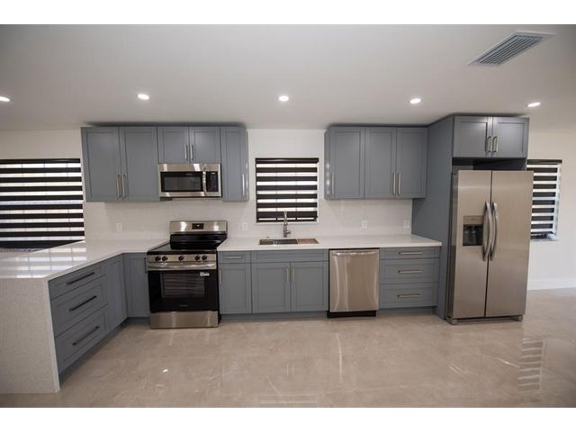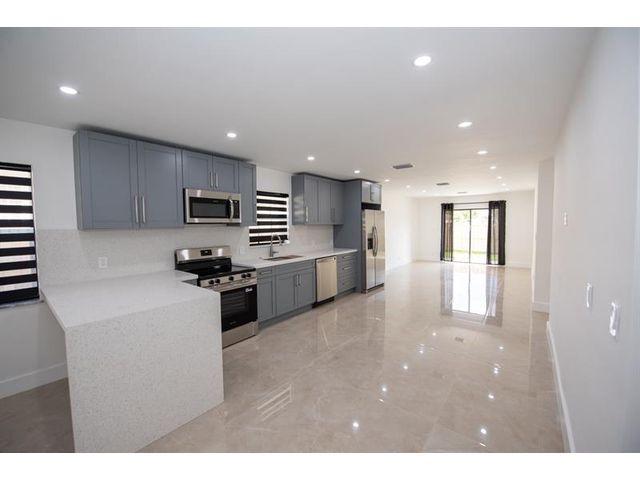 Beautifully fully remodeled corner home featuring 3 bedrooms and 2 bathrooms with spacious Open Layout. This property offers a brand new AC, new water heater, new kitchen, and new appliances. New porcelain tile flooring throughout, completely renovated bathrooms and showers. Fresh Interior and Exterior paint. New Hurricane impact doors, and a new Hurricane impact 2 car Garage Door. Newer Roof. A beautifully updated backyard. Close to shops, highway and FLL airport. This is move-in ready.