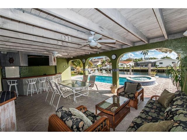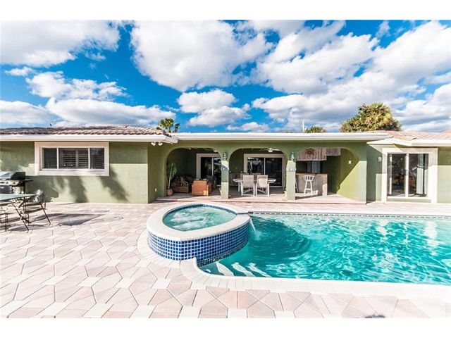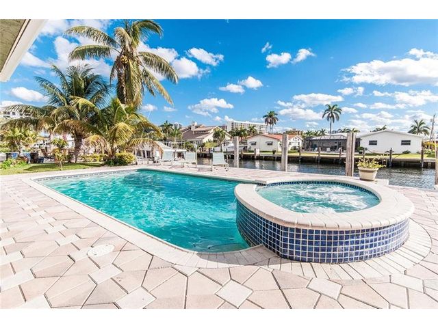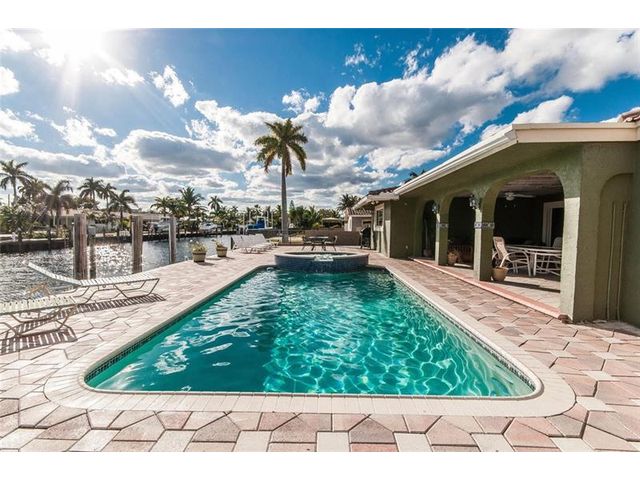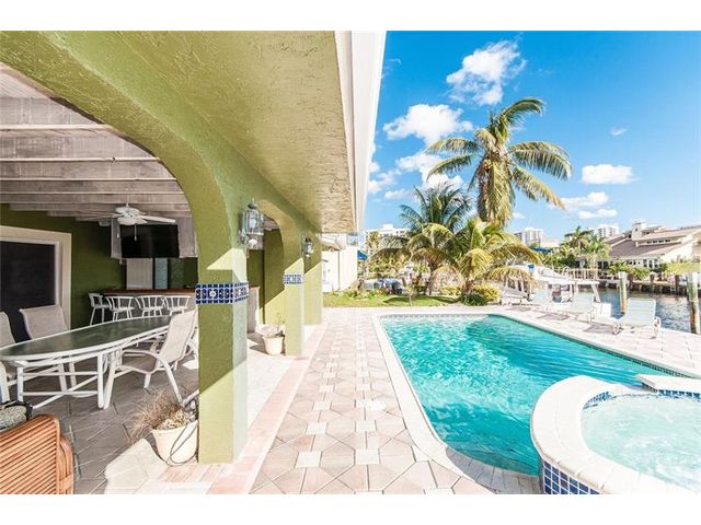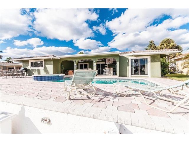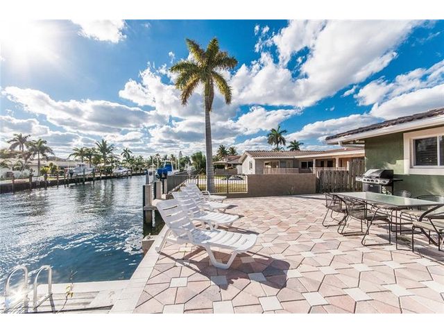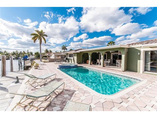 This waterfront pool home with 2 car garage is ready for updates to become the house of your dreams. It sits 4 homes off the Intracoastal and is located on a gated island cul de sac in one of the best areas of Pompano Beach. It is ideal for the boating enthusiast with a new protected dock for up to a 70 ft boat with NO fixed bridges and a short ride to the Inlet. The home is spacious with a triple split layout and versatile floor plan that could be reimagined to a modern design. Entertainers will love the living areas that access a huge covered patio overlooking the pool, spa and water, ideal for outdoor living. The kitchen is huge and primed to be opened up to the living dining areas. The neighborhood is secure and close to excellent shopping, dining, golf and a short ride to the beach.