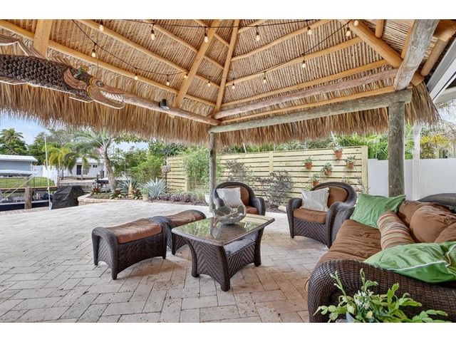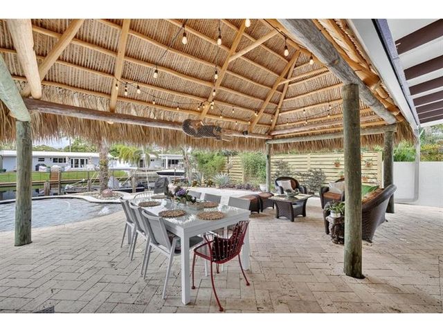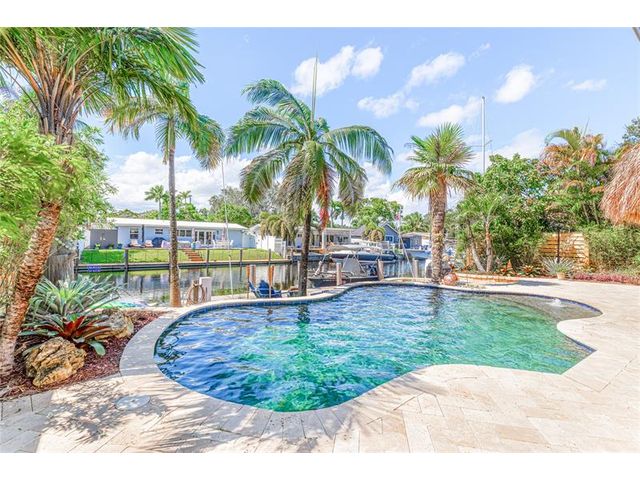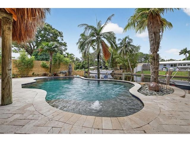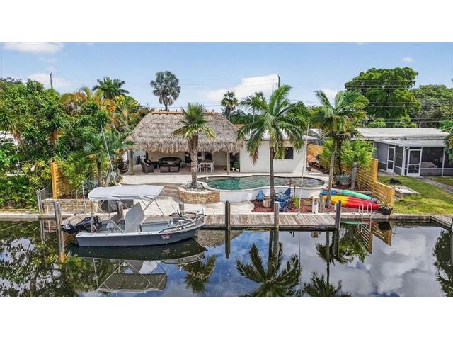 Start the new year in this stunning Fort Lauderdale waterfront retreat. Seamless indoor-outdoor living designed for relaxation & entertaining. Your private oasis w/ a custom pool & large tiki hut for resort-style lounging. Boating enthusiast? Enjoy 60 feet of deep water, no fixed bridges, providing direct ocean access. Inside, enjoy an open-concept floor plan w/ vaulted ceilings, gourmet kitchen w/ a spacious granite island, custom cabinetry & high-end appliances.3 bedrooms & 2 NEW spa-inspired bathrooms. Significant upgrades for peace of mind & insurance savings: 2021 metal roof & full impact windows/doors. Low-maintenance, professionally designed zero-scape landscape. Walk to 2 parks. Turnkey & move-in ready, this home delivers a rare combination of lifestyle, location& luxury.