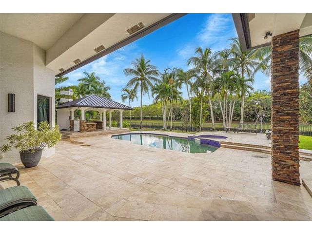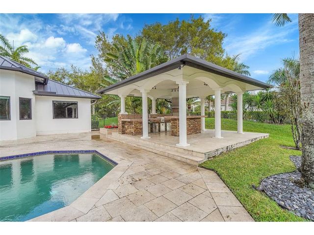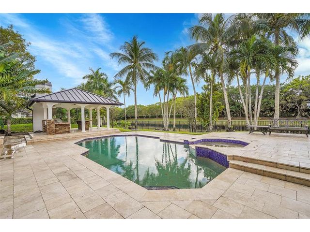 Windmill Ranch is Weston's most prestigious and unique community. This exquisite luxury home was recently completed remodel inside and out includes a grand circular paver driveway, a spectacular master suite, gourmet kitchen with a huge center island, a theatre, office, split plan, each bedroom has its own bathroom and closet. An amazing patio, perfect for entertaining, an oversized pool with spa and a summer kitchen/Gazebo. New metal roof and hurricane impact windows and French doors. Exterior is painted recently, lush landscaping. One-of-a-kind home, a must see, the home is price to sale. A+ schools.