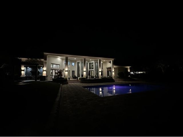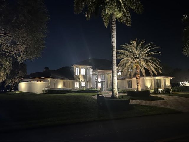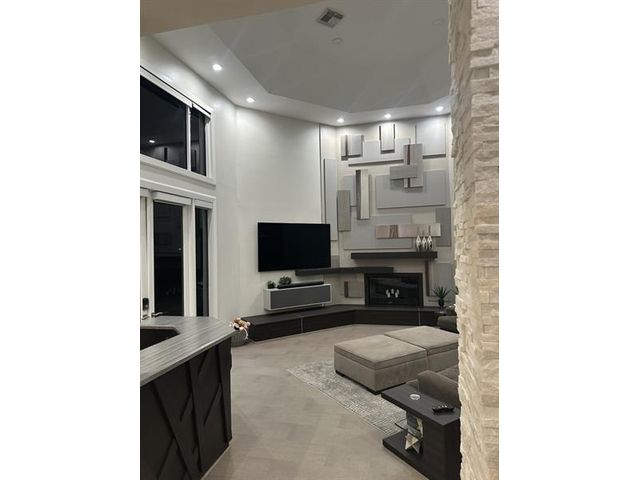 This magnificent 1.15-acre lakefront estate in Windmill Ranch Estates offers a lifestyle defined by soaring 22' ceilings, stunning living spaces, and gourmet kitchen. Floor plan features, main-level primary suite, office/flex space, guest room, second floor has 3 bedrooms and studio. Oversized covered patio with a summer kitchen, outdoor fireplace overlooks the oversized pool and lake. Updates include a 2018 roof, 2019; HVAC (4), and new appliances. Priced incorporating no impact. Truly an amazing home