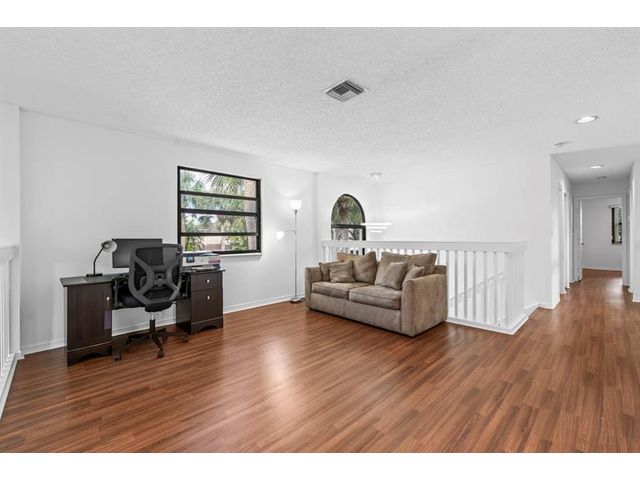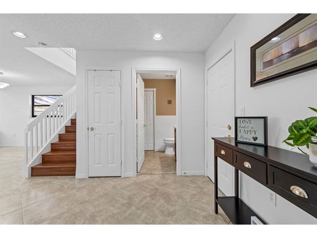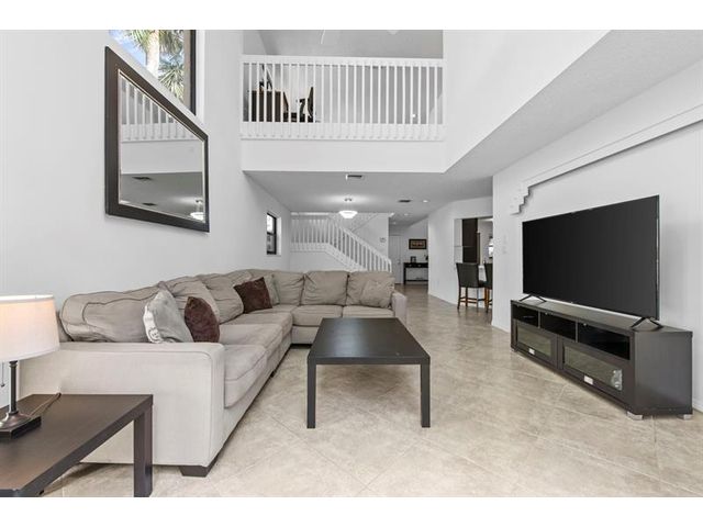 Beautiful 3 bed, 2.5 bath home on a stunning pie-shaped lot with serene lake and fountain views from nearly every window. No neighbor on one side and located beside the community pool for added privacy. Enjoy a screened-in porch and private master bedroom balcony overlooking the lake and backyard. Brand-new roof (2025) and all impact glass (2025). Remodeled kitchen (2021) with quartz counters and stainless Samsung appliances, plus renovated baths (2021). Spacious loft upstairs and versatile downstairs flex room with porch access—ideal for office, gym, or guest space. Some photos include virtual staging. Don’t miss the chance to own one of the most desirable lots in the community—this rare opportunity won’t last!