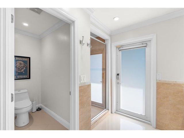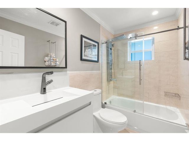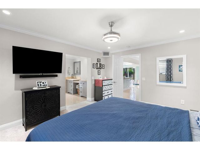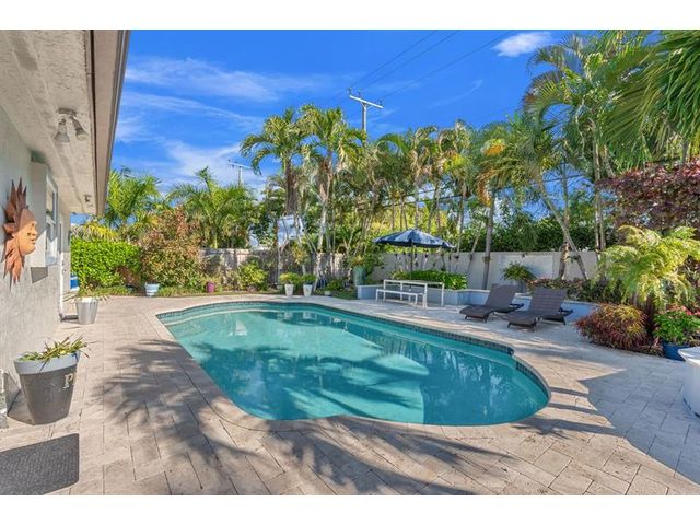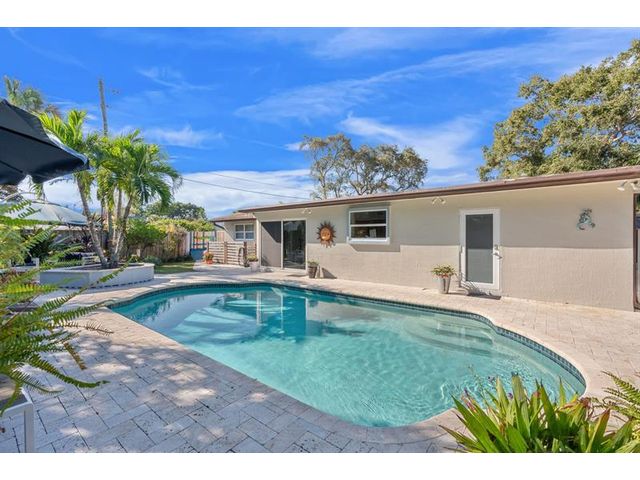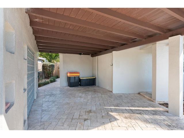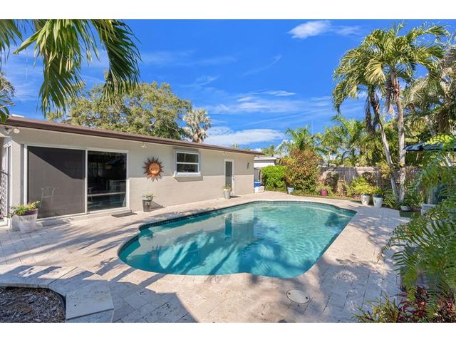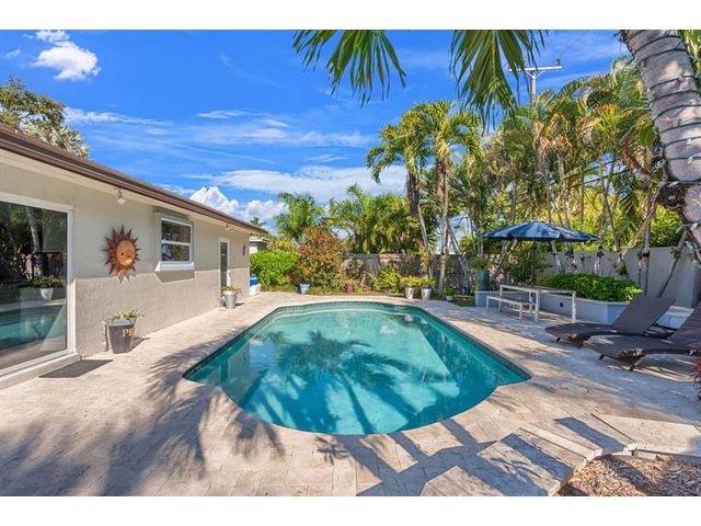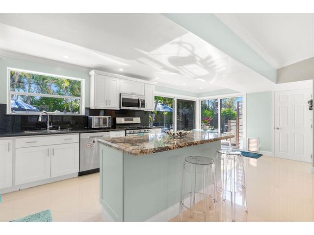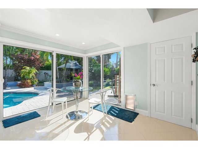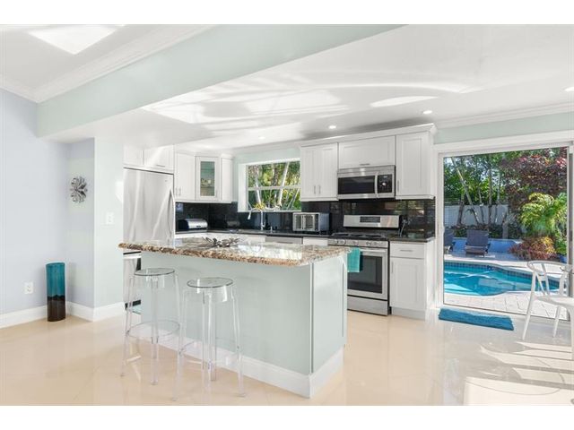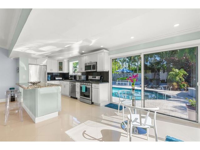 Beautiful, updated 3-bedroom, 3-bath home located in Coral Heights, Oakland Park. Open floor plan encompasses Chef’s kitchen with granite counter tops, SS appliances, island, gas stove and dinette offering views of landscaped back yard and heated pool; pool deck, walkways, driveway, and car port are ivory travertine tile. Large living area. Two split primary suites with walk-in closets and spa-style bathrooms (main primary with double shower/sinks). High ceilings, polished porcelain (ceramic) tile floors, and crown molding throughout; bedrooms are carpeted. Additional highlights: gas dryer, tankless water heater, impact doors & windows, large circular driveway w/ covered carport, camera system, front/back exterior outlets. Property resides on Holy Cross Hospital power grid.