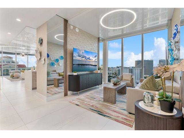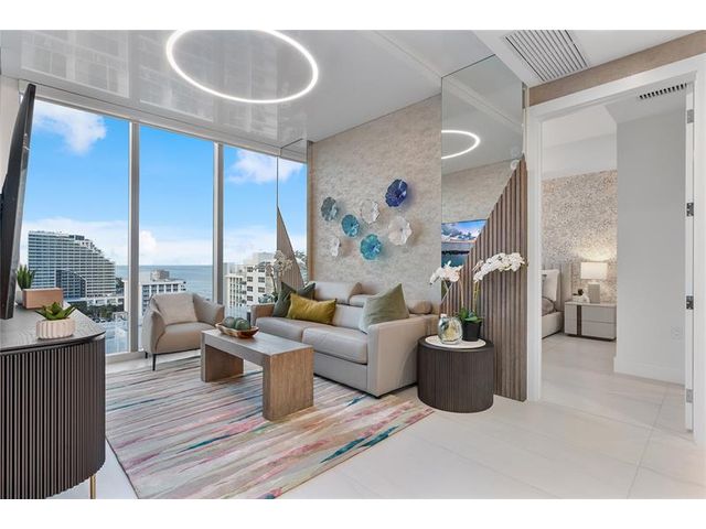 As featured on the cover of Florida Décor! Welcome to your new residence in the sky in Ft. Lauderdale's newest and tallest beachfront towers. Selene Oceanfront Residences is directly across the street from the award-winning Las Olas Beach, offering breathtaking views, & unparalleled resort-style living. This completely TURNKEY home is thoughtfully enhanced by world renowned designer Perla Lichi. Featuring reflective ceilings, ambient lighting, gourmet Italian kitchen w/ exquisite craftsmanship & state of the art appliances, a stunning wine cellar, custom built-ins, motorized blinds, texturized wallpaper adding depth & dimension & so much more. Amenities include two pools (resort-style and 75' lap pool), fitness centers, cabanas, poolside bar, dog park, 24/7 valet, and direct beach access.